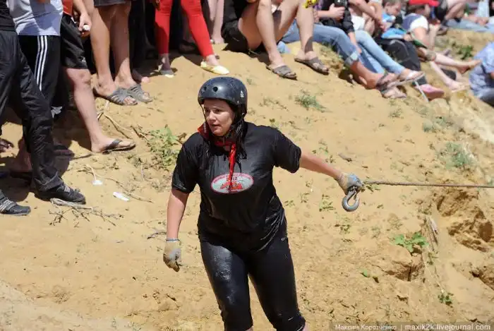 Участникам гонки нужно было пройти довольно сложную трассу, увязая в глубокой грязи.