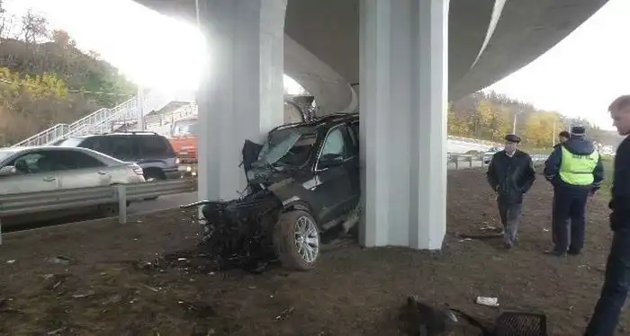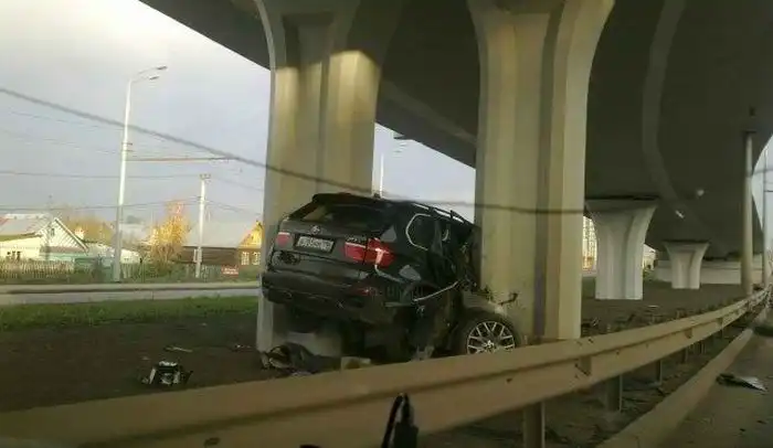 который на полной скорости протаранил опору новой развязки на Танковом кольце.