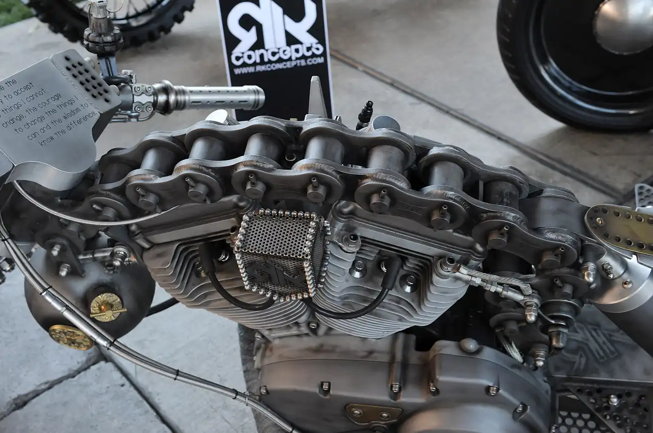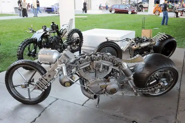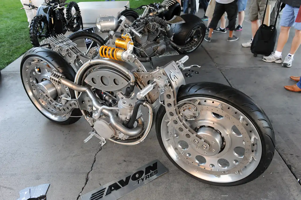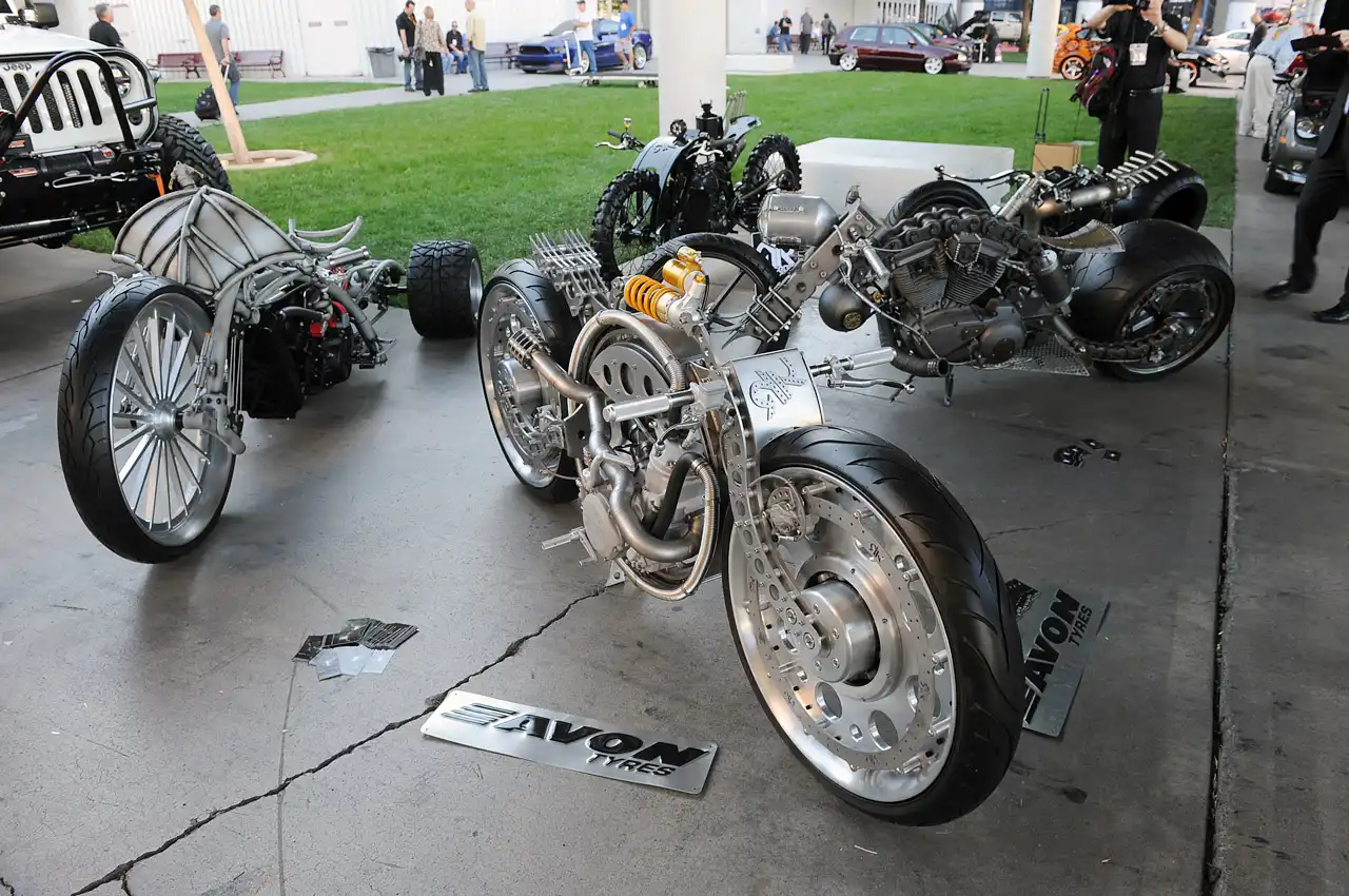 Тот факт, что эти сумасшедшие 2х и 3х колёсные создания находятся в центре главного зала, конечно, не сильно произведет впечатление на вас, зрителей.Это пять концептов: The RK S, RK Spring Frame, RK Chain, RK Thing и один, кажется, не имеет названия, но есть кадр, где он сфотографирован полностью.Нет слов, дабы описать их, кроме как сказать дизайнеру, Rafik Kaissi, что он поклянётся дать прокатиться.