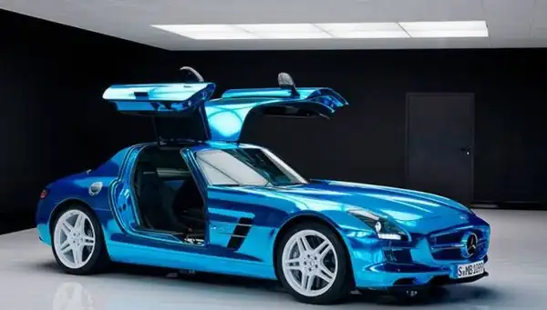 В дополнение к его резкому внешнему виду в стиле синего жидкого металла идет и соответствующая внутренняя начинка. Этот SLS с электроприводом может развивать скорость в 100 километров в час за 3.9 секунды и развивать максимальную скорость в 155 миль в час.