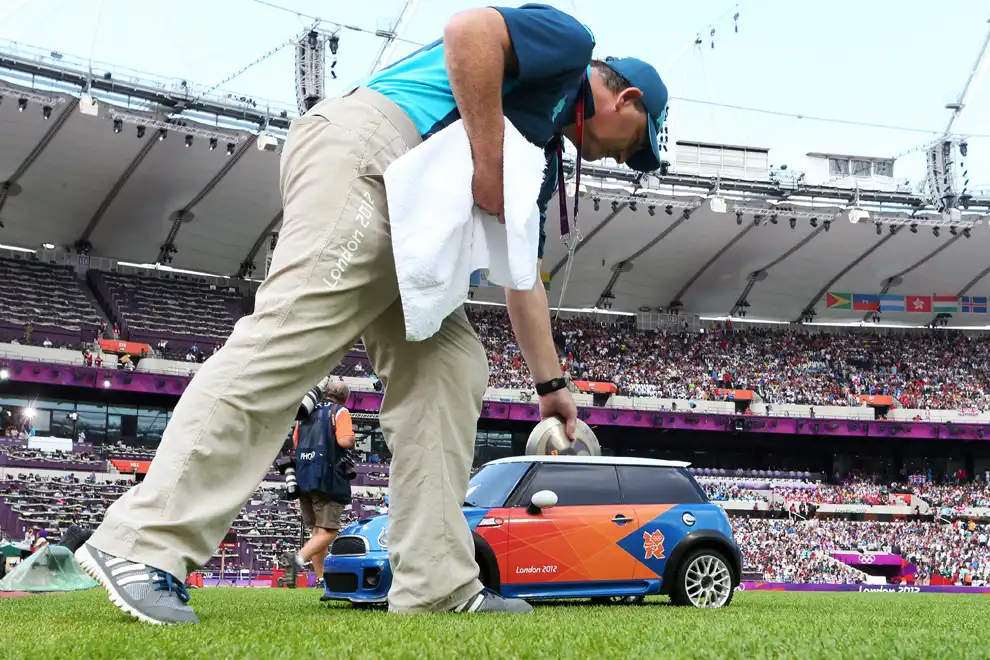 Подруга помогает Дженнифер Нопфель поправить платье на гонках, где Дженнифер вручает призы победителям.