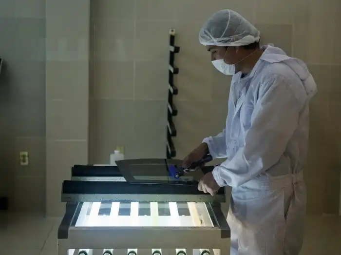 Рабочий изготавливает стекло для бронетранспортера в Экатепеке, Мексика. Спрос на бронированные автомобили в Мексике вырос.