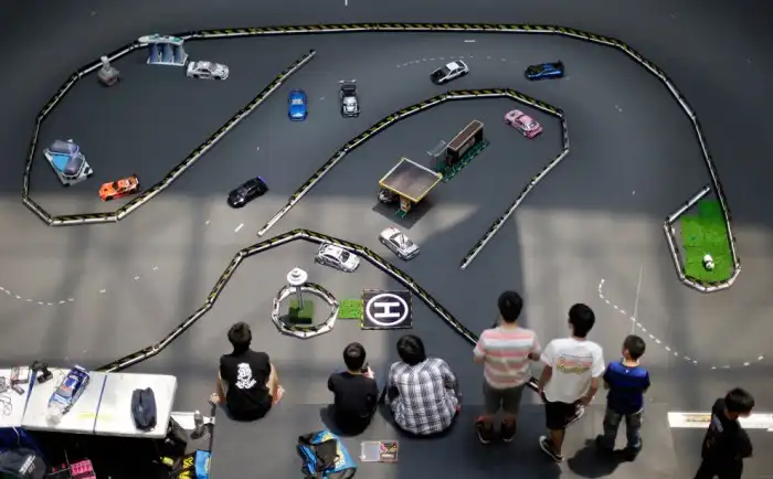 Люди спускаются вниз по холму на самодельных автомобилях во время Автофестиваля в Медельине, Колумбия.