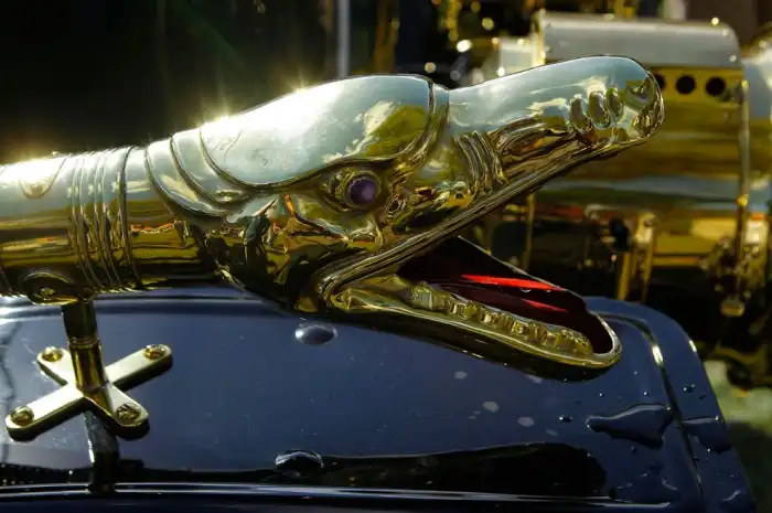 Украшенный гудок на автомобиле «1911 Stanley Steamer» во время ежегодной выставки классических и старинных автомобилей в Роквилле.