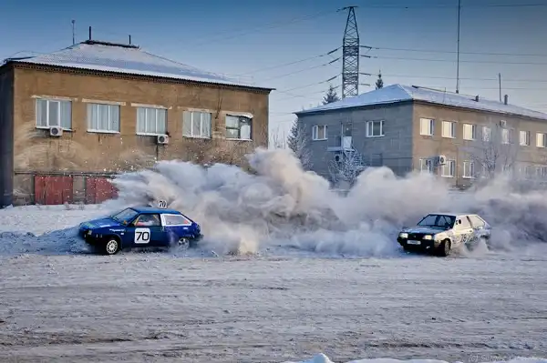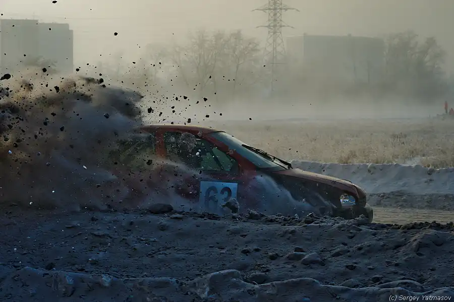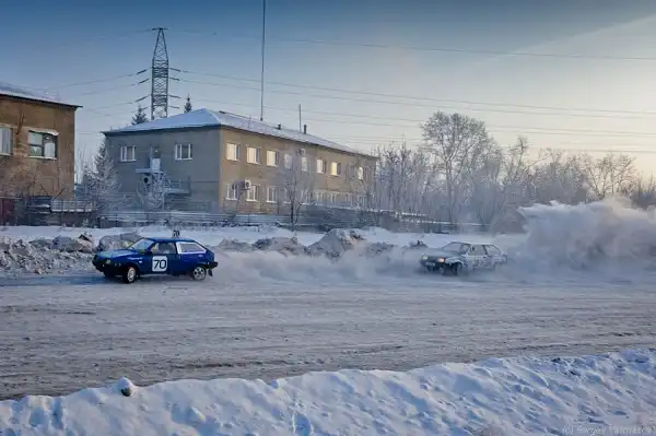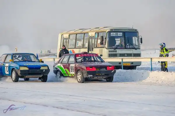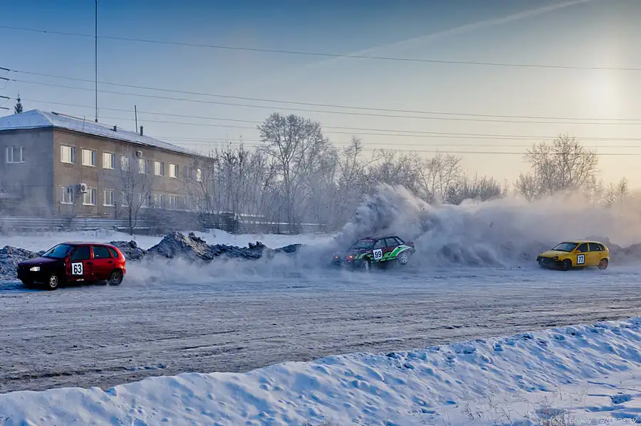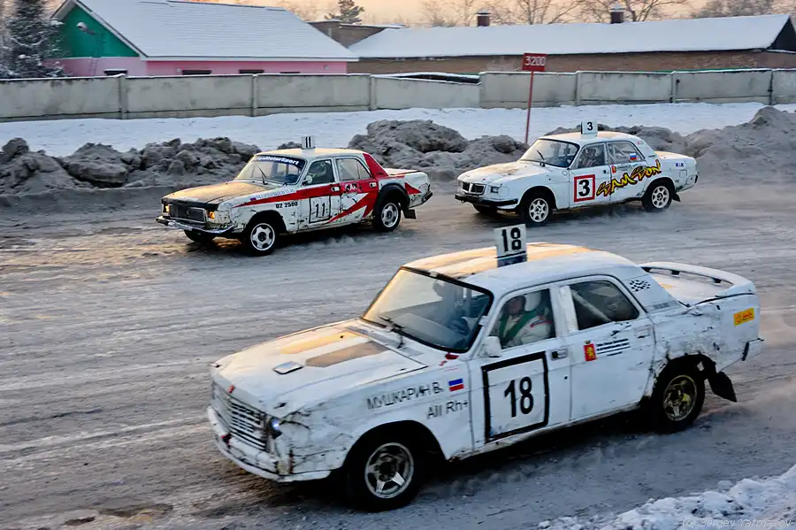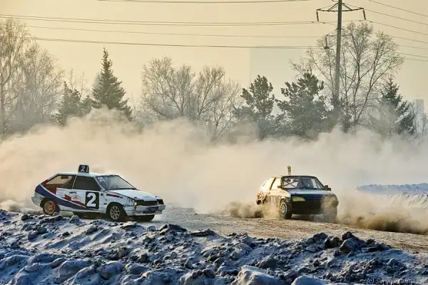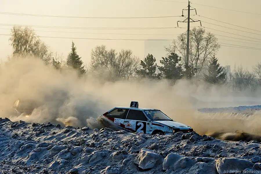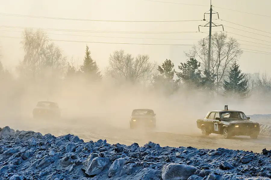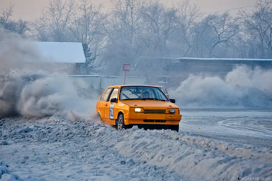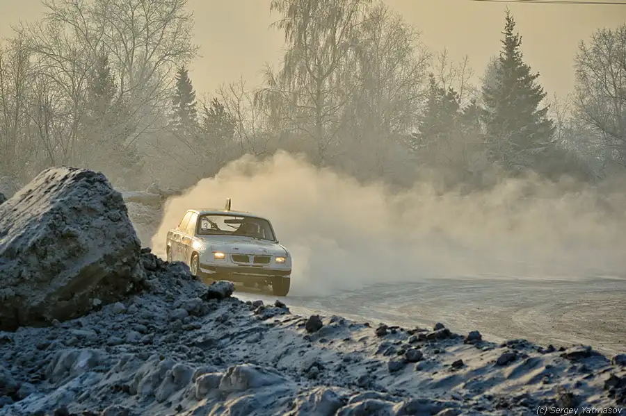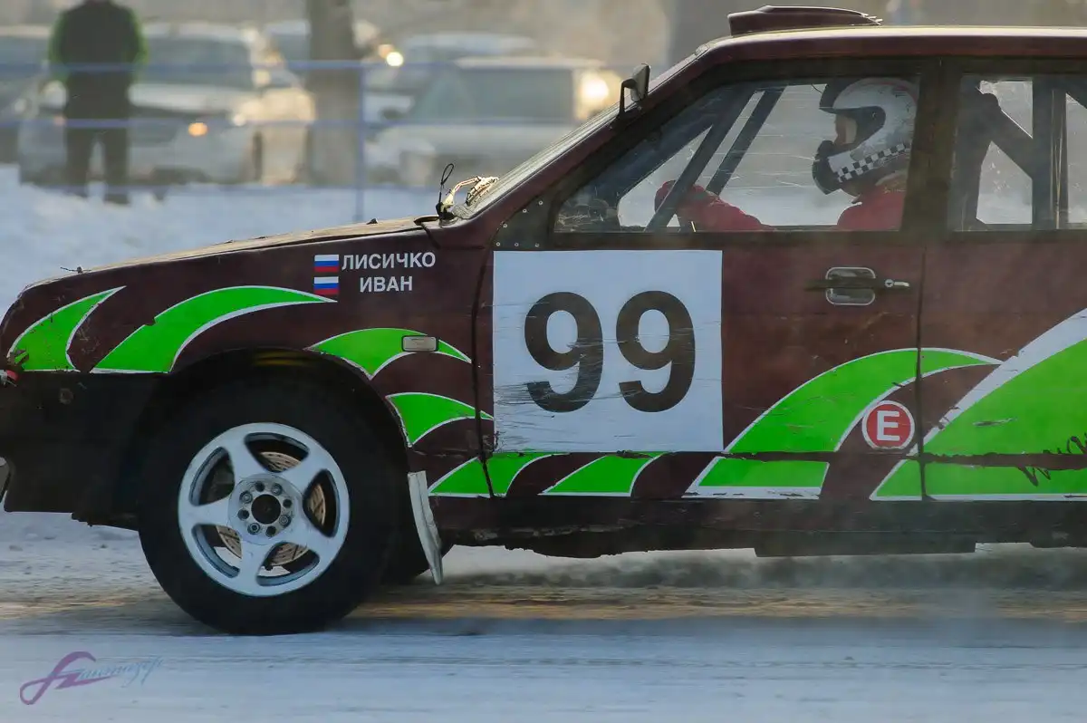По регламенту соревнований автомобили должны были участвовать на нешипованной резине. поэтому было достаточно много разворотов, переворотов, вылетов.