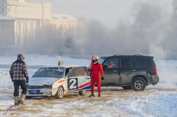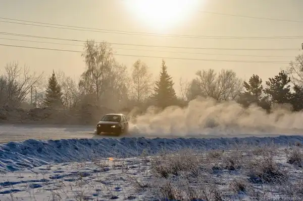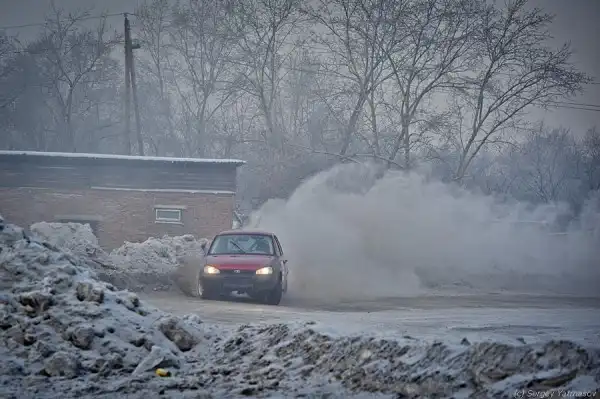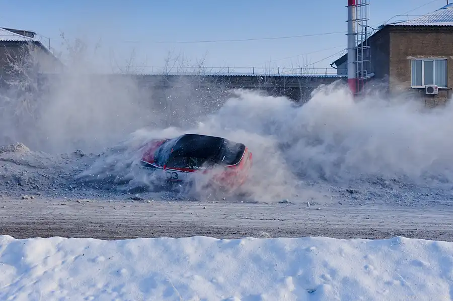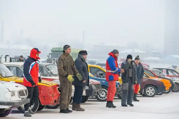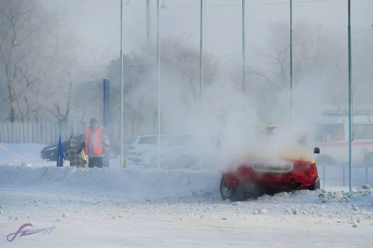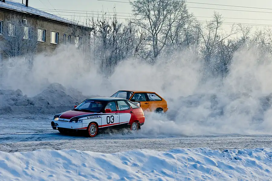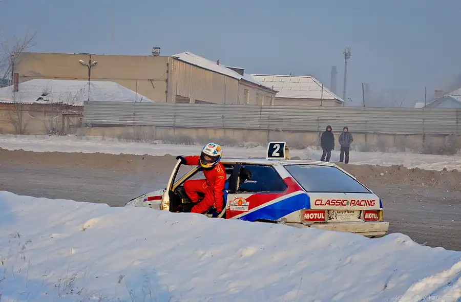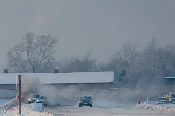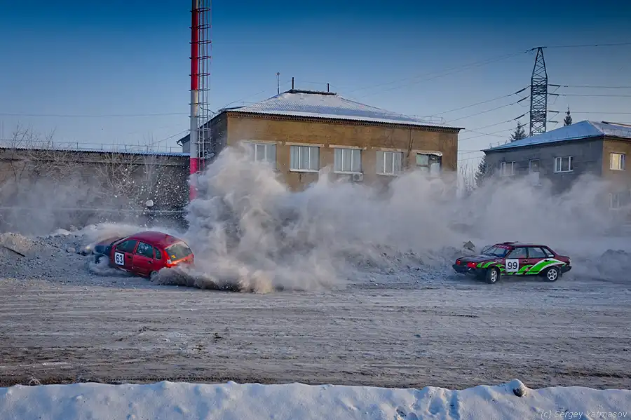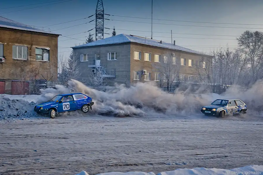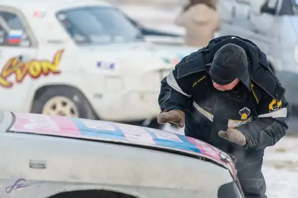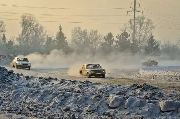 По регламенту соревнований автомобили должны были участвовать на нешипованной резине. поэтому было достаточно много разворотов, переворотов, вылетов.