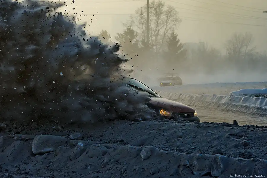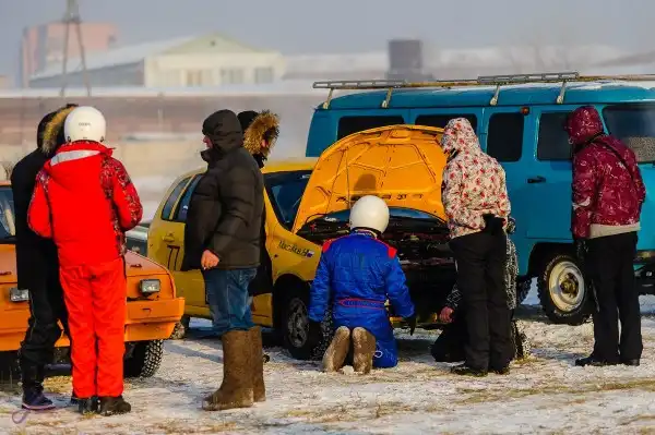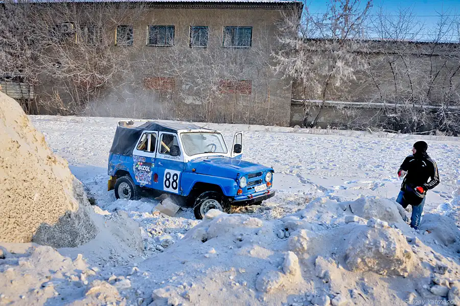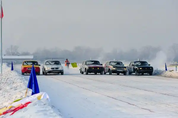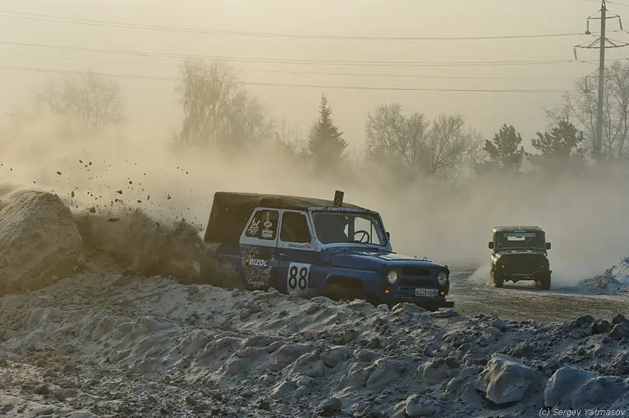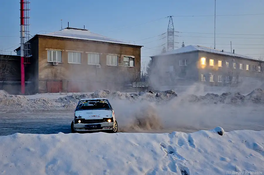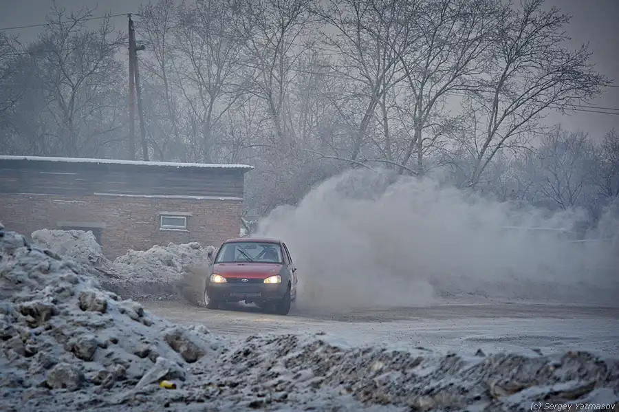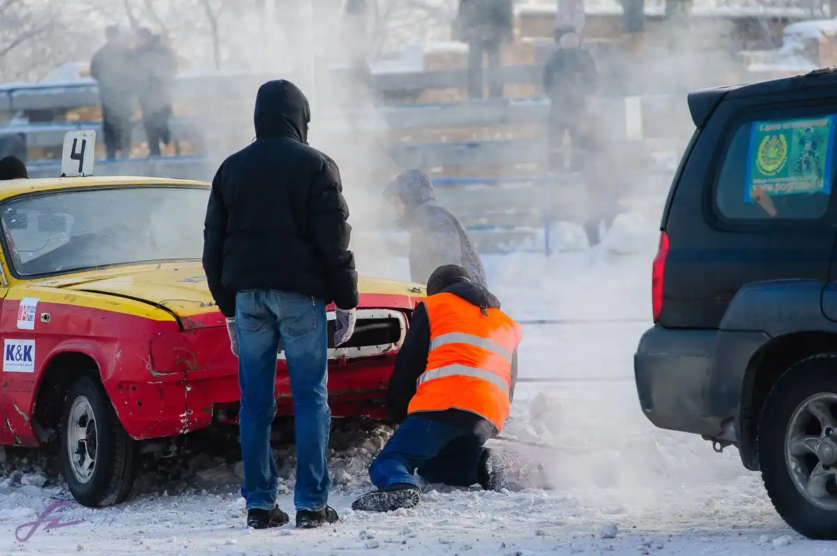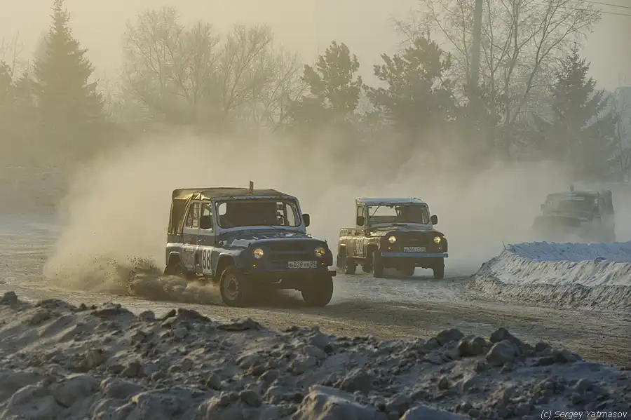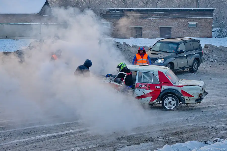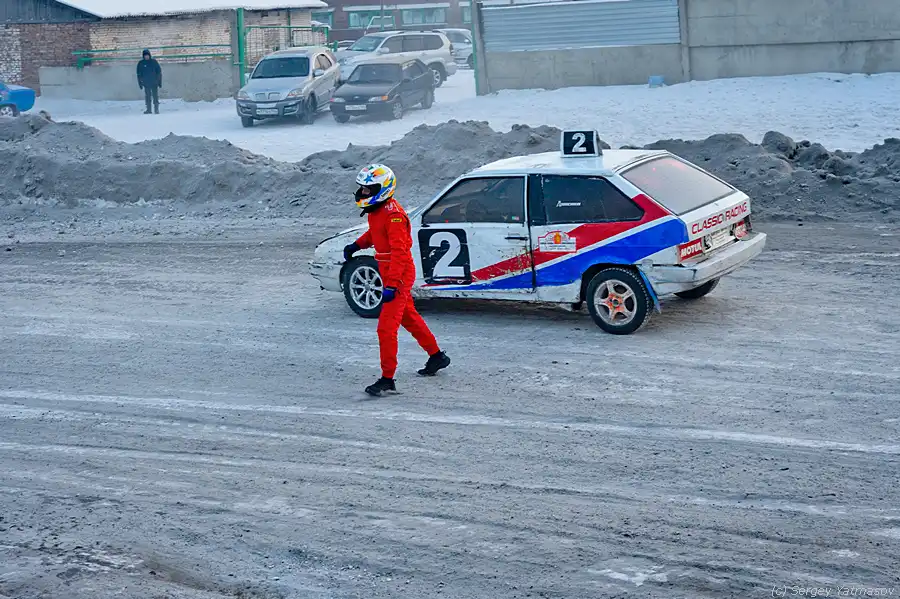 По регламенту соревнований автомобили должны были участвовать на нешипованной резине. поэтому было достаточно много разворотов, переворотов, вылетов.