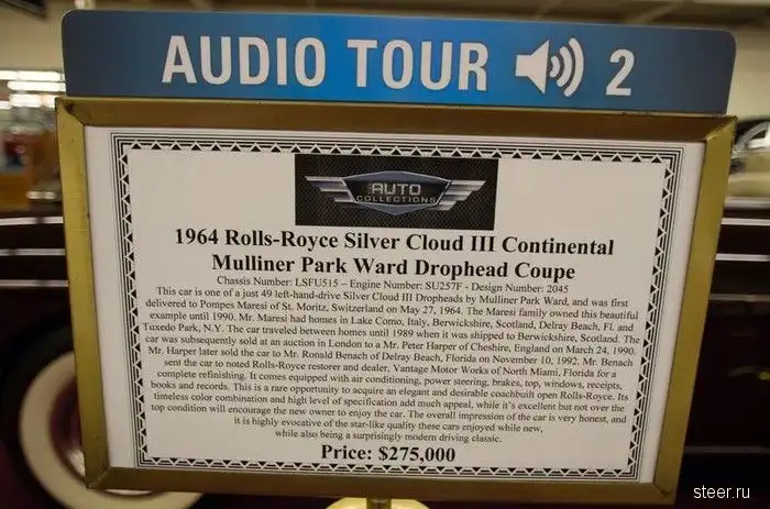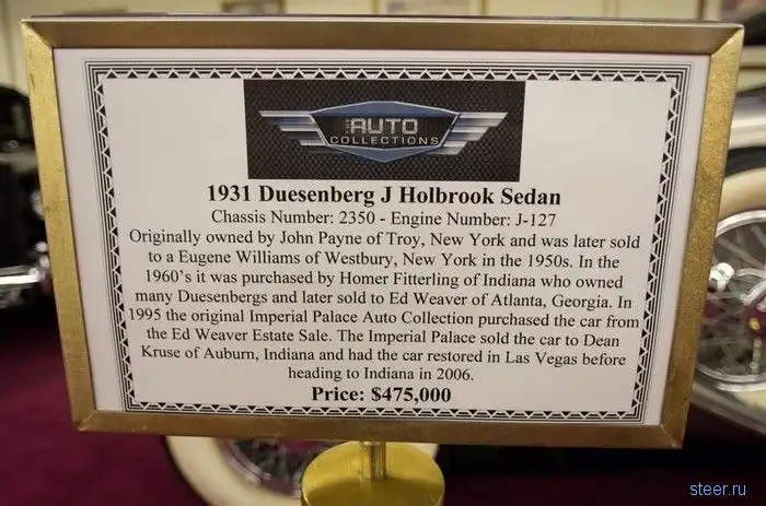 Коллекция этих редчайших автомобилей носит имя Imperial Palace Auto Collection и располагается в Лас-Вегасе - центре азарта США. Многие из представленных автомобилей можно купить, если у вас конечно хватит денег..