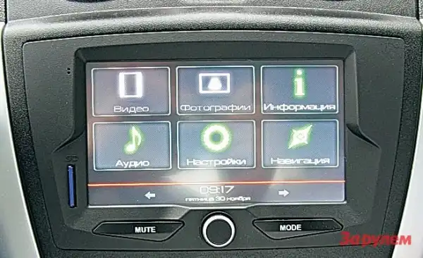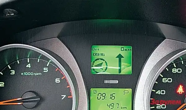 Основная информация появляется на дисплее, расположенном в центре приборной панели, а на щитке приборов - стрелки-подсказки указывают на ближайший поворот. Система работает как со спутниками Глонасс, так и с GPS.