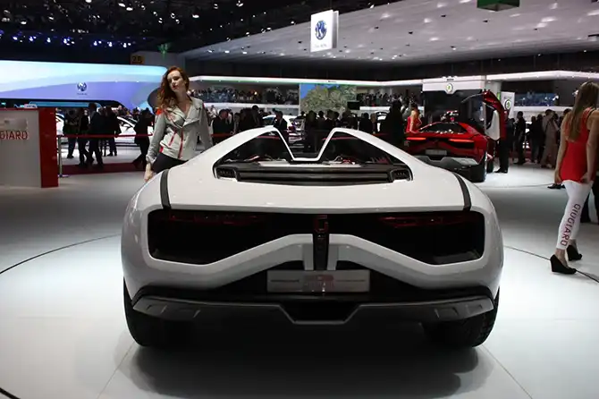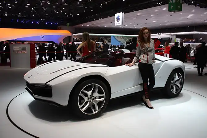 Суперкроссовер по имени Parcour привезли в Женеву кудесники из ItalDesign Giugiaro. Полноприводный автомобиль был представлен в вариантах купе и кабриолет. Нам интереснее второй вариант. Под капотом авто находится двигатель Lamborghini, мощностью 550 л.с. Естественно, производитель постарался максимально облегчить вес за счет карбона и алюминия. Полторы тонны веса могут достичь скорости в 100 км/час за 3,6 секунды!