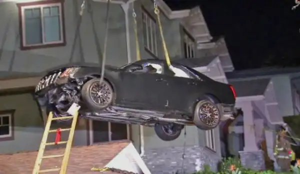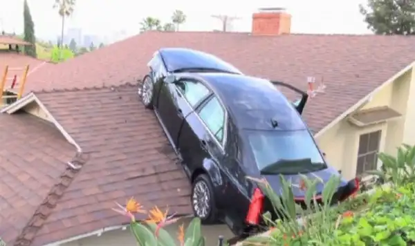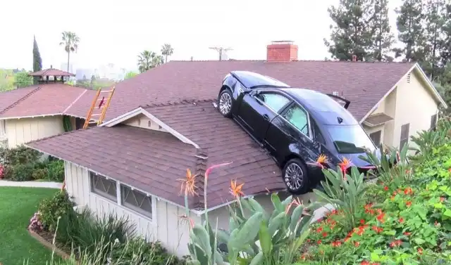 Растерявшись, Роберт Винн направил свой Cadillac прямо на стоявший впереди дом. Благодаря местному рельефу, лобового столкновения удалось избежать. Вместо этого автомобиль, задев коттедж, приземлился прямо на его крышу.
