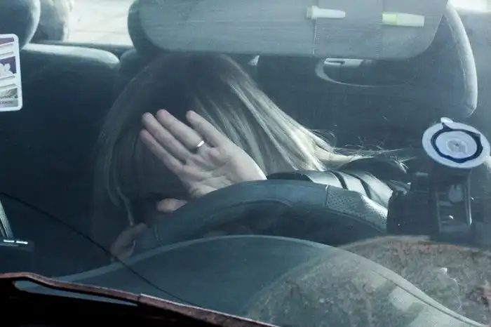 героиня на маленькой машинке от смущения закрыла лицо рукой, и, продолжая второй