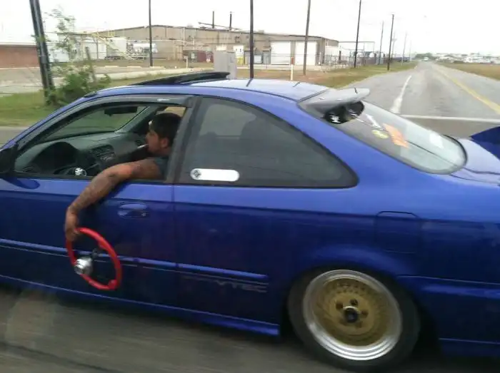 Ох уж эти понты за рулем :) Как говорится, тачку прокачал, сабвуфер с усилком поставил, стекла все затонировал, ах да, еще и про прямоток не забыл. А чем дальше удивлять других участников дорожного движения? Честно скажу, удивить то он удивил, но вот идиот он - это точно ;)