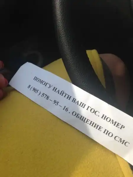 Под дворником на лобовом стекле автовладелец находит записку, как на фото. Он пишет.
