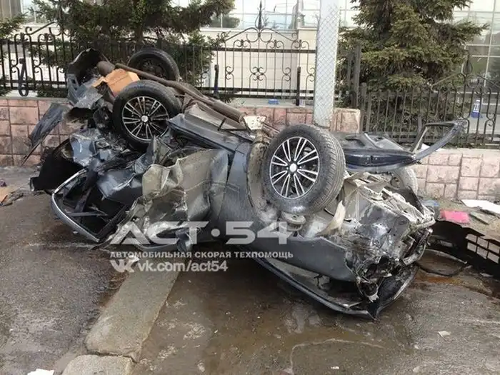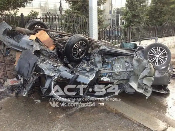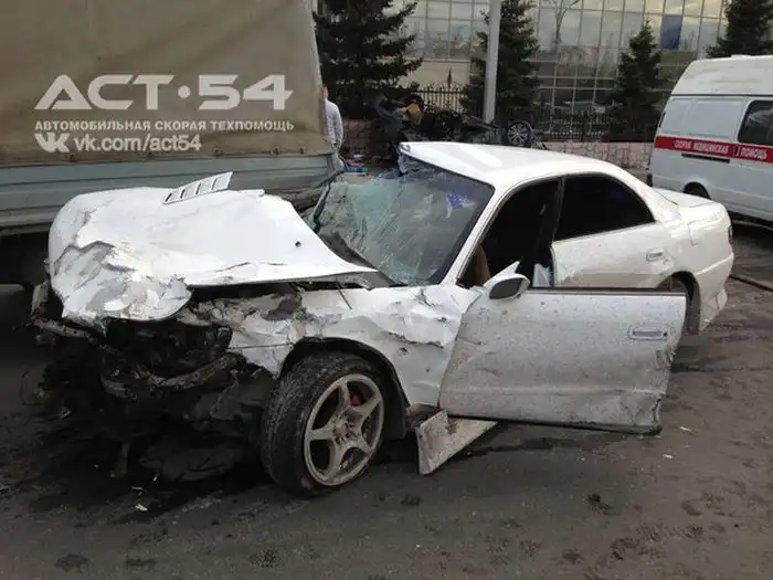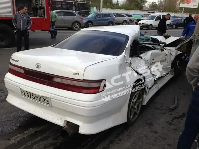 Виновником этого серьезного ДТП, которое произошло на улице Кирова у метро Октябрьская в Новосибирске, стал водитель спортивного Toyota Chaser Tourer V. По словам очевидцев аварии, он устроил гонки с красным Hyundai Elantra, пересек двойную сплошную и протаранил припаркованную Toyota, в которой на момент столкновения находилось два человека. Удар был такой силы, что Toyota перевернулась на крышу, а спасателям пришлось несколько часов извлекать из груды металла пострадавшего парня и тело погибшей девушки. По официальным данным, за рулем спортивного авто находился 18-летний узбек, сдавший на права в апреле, который на данный момент находится в реанимации.