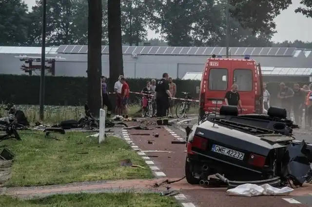 Когда я первый раз посмотрел на фотографии этой жуткой аварии, в которой спортивный представительский седан Audi S8 разорвало просто на куски, я даже и представить себе не мог, что водитель мог выжить в ДТП. По официальной информации владелец автомобиля, который является гражданином Польши, ехал на скорости свыше 240 км/ч. Он не справился с управлением и правым боком авто врезался в дерево, из-за чего осколки машины разлетелись шрапнелью больше, чем на 100 метров! Так вот, водитель не только выжил, но и даже не получил никаких повреждений, кроме мелких ссадин и царапин. Водитель точно родился в рубашке, и я бы ему теперь настоятельно советовал сыграть в лотерею или сходить в казино, пока такая удача на его стороне ;)
