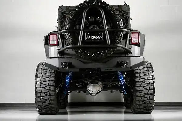 Вы не можете скачивать файлы с нашего сервераТехасское ателье построило в Далласе уникальный Jeep Wrangler. Профессионалы снабдили свой полноприводник кузовом, изготовленным из волокон кевлара. Защитная оболочка должна предохранять Jeep от камней и даже огня. Кроме того, передняя, задняя и боковые стенки усилены дополнительными "слоями" для особо экстремальной местности. Starwood Motors отказались от традиционных крыльев в пользу свободы передвижения 22-дюймовых колес. Специальные пружины и амортизаторы, а также приспособленные к особым условиям оси расширяют диапазон проходимости Wrangler Full Metal Jacket.Учитывая очень крепкий каркас и плотно облегающие спортивные сиденья, можно сказать, что Starwood позаботился о безопасности пассажиров. Вместо нормальных дверей и крыши салон обтянут крупноячеистой сеткой. Под капотом разместился 3,6-литровый шестицилиндровый агрегат с системой изменения фаз газораспределения и мощностью около 290 л. с. Лебедка с кевларовой нитью гарантирует, что "цельнометаллическая оболочка" не застрянет где-нибудь в глуши и выберется своими силами. За монстроподобный внедорожник Starwood Motors просит около 83 000 евро. Право на эксплуатацию по дорогам общего пользования поставлено под сомнение.