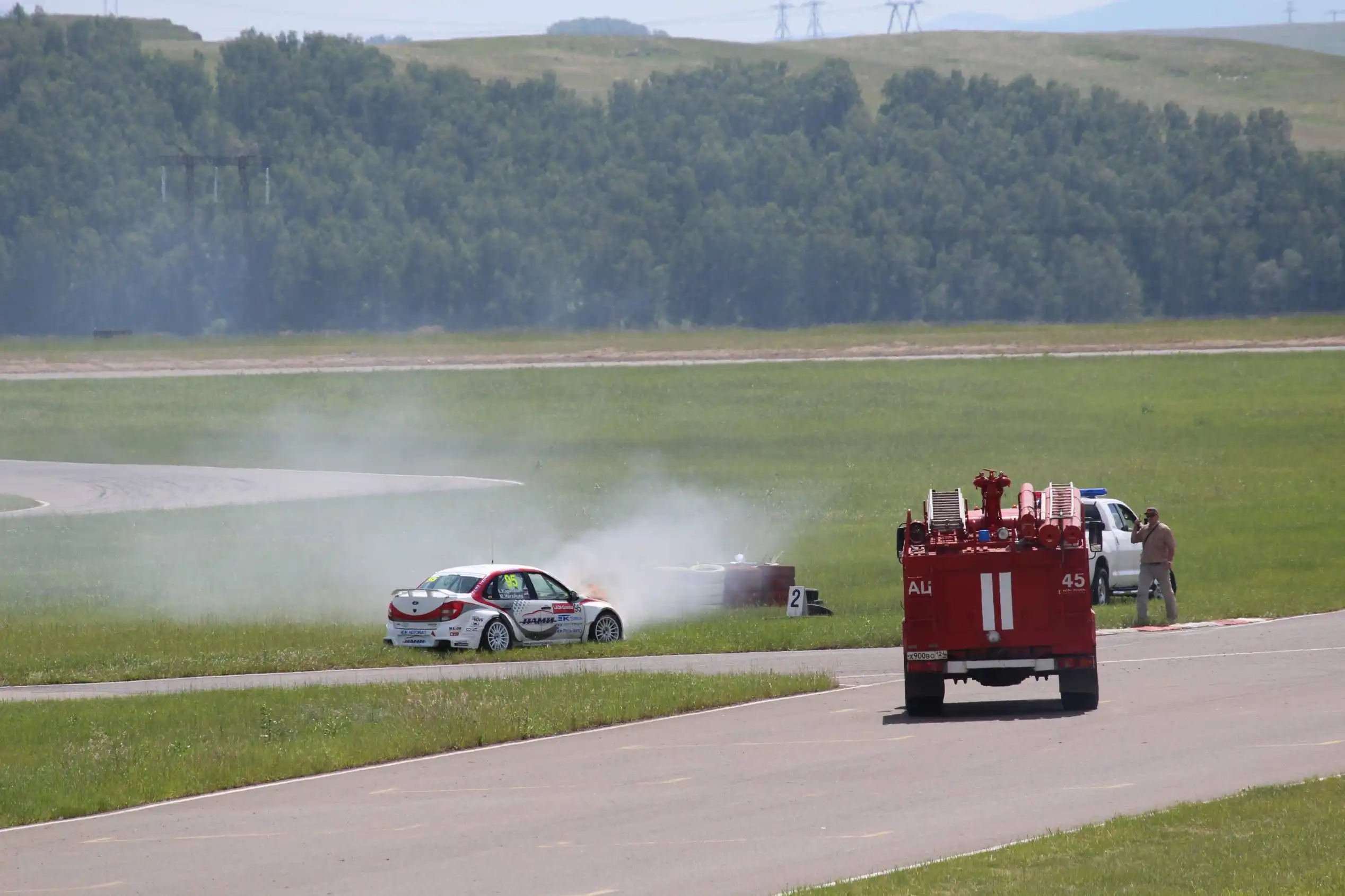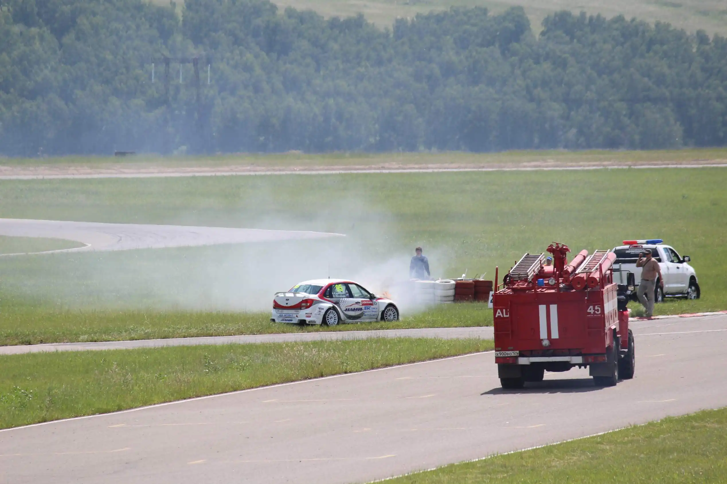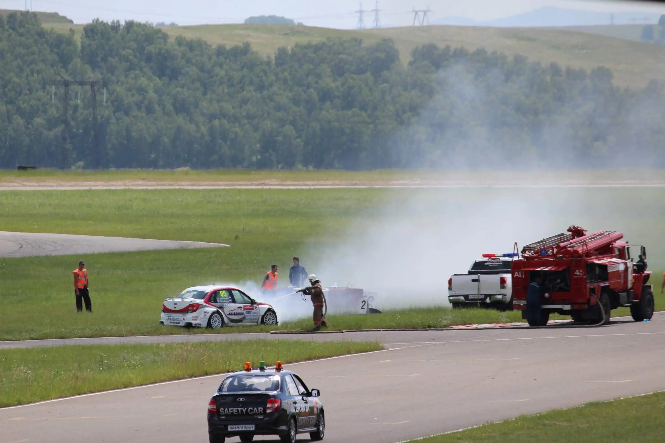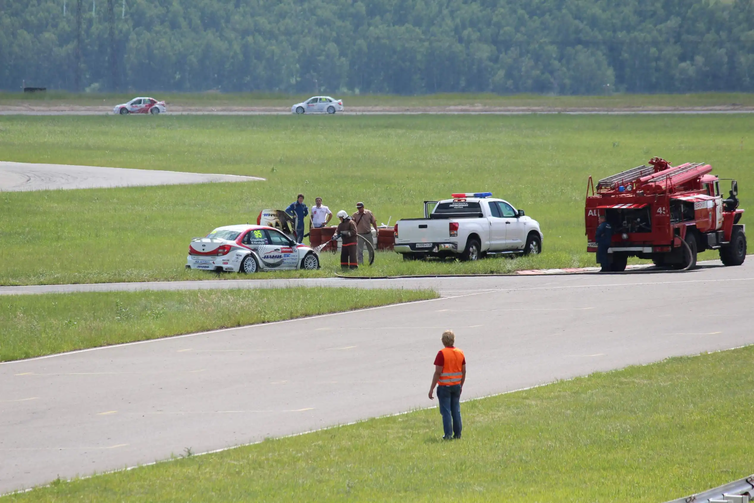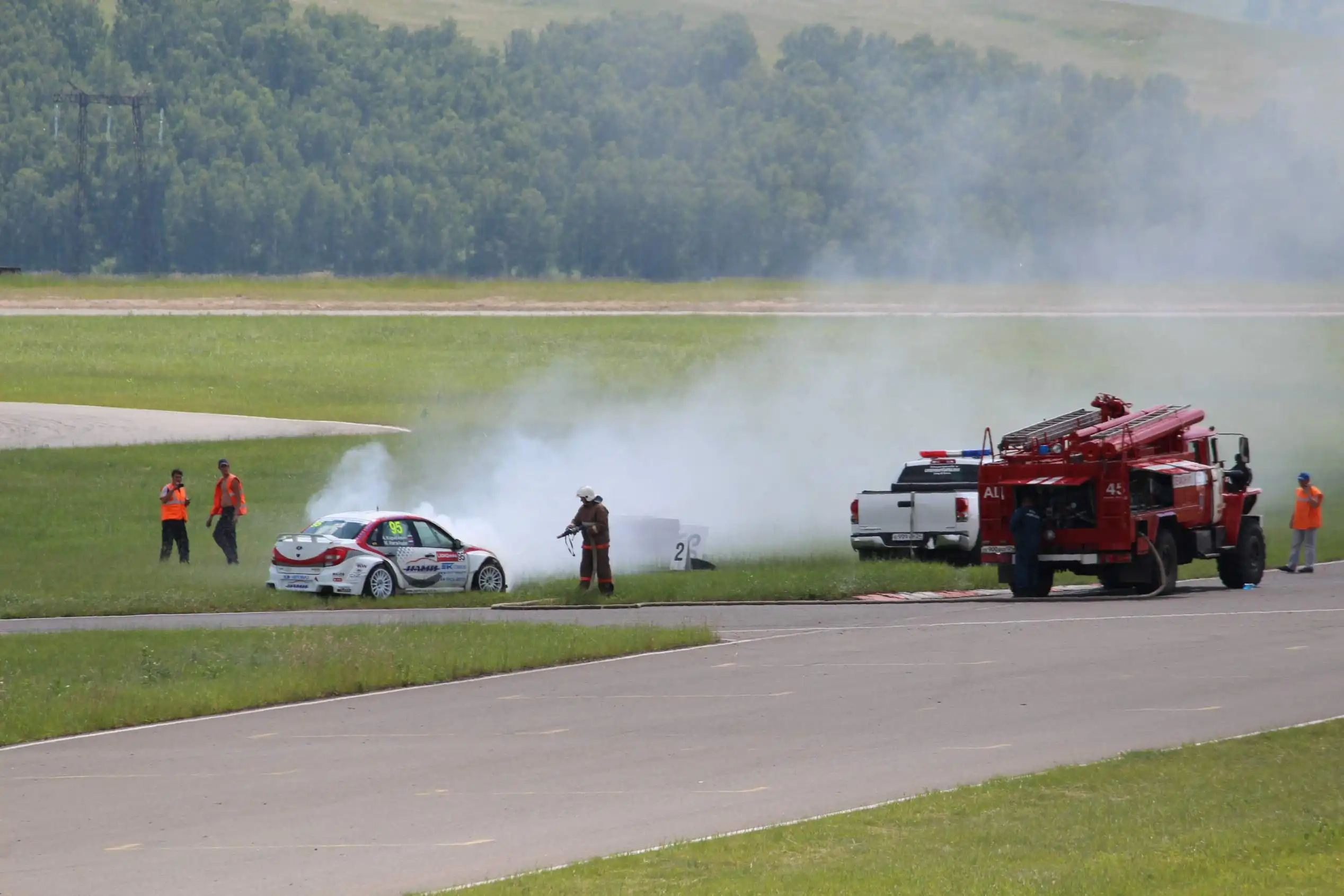 Сделаю спойлер: в этой части Вы увидите два из четырех возгораний спортивных автомобилей. Пожарная служба работала ОЧЕНЬ медленно. Был один пожар в самом дальнем повороте, пожарники ехали туда минут 10-15, и за это время подкапотное простанство машины сгорело полностью.
