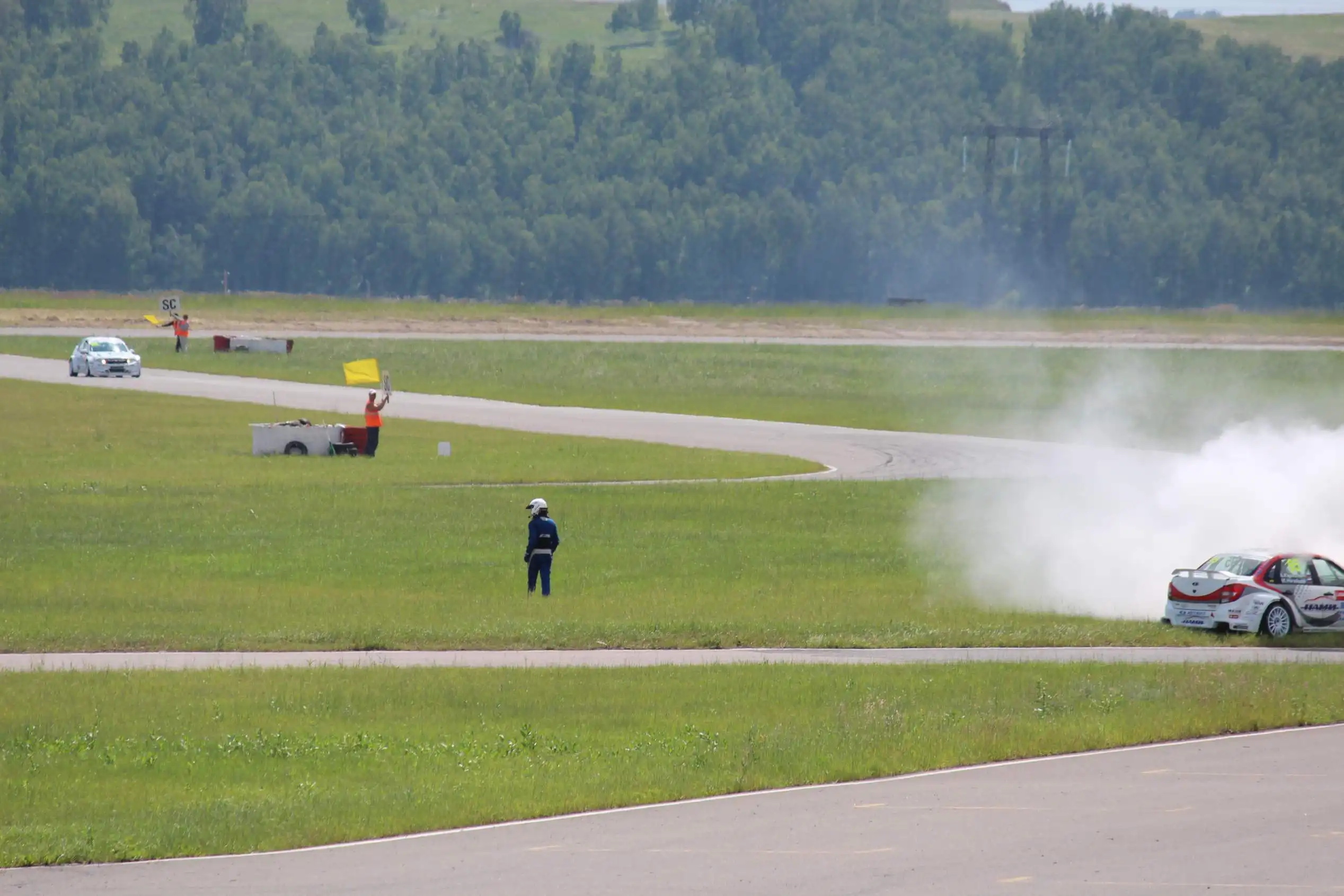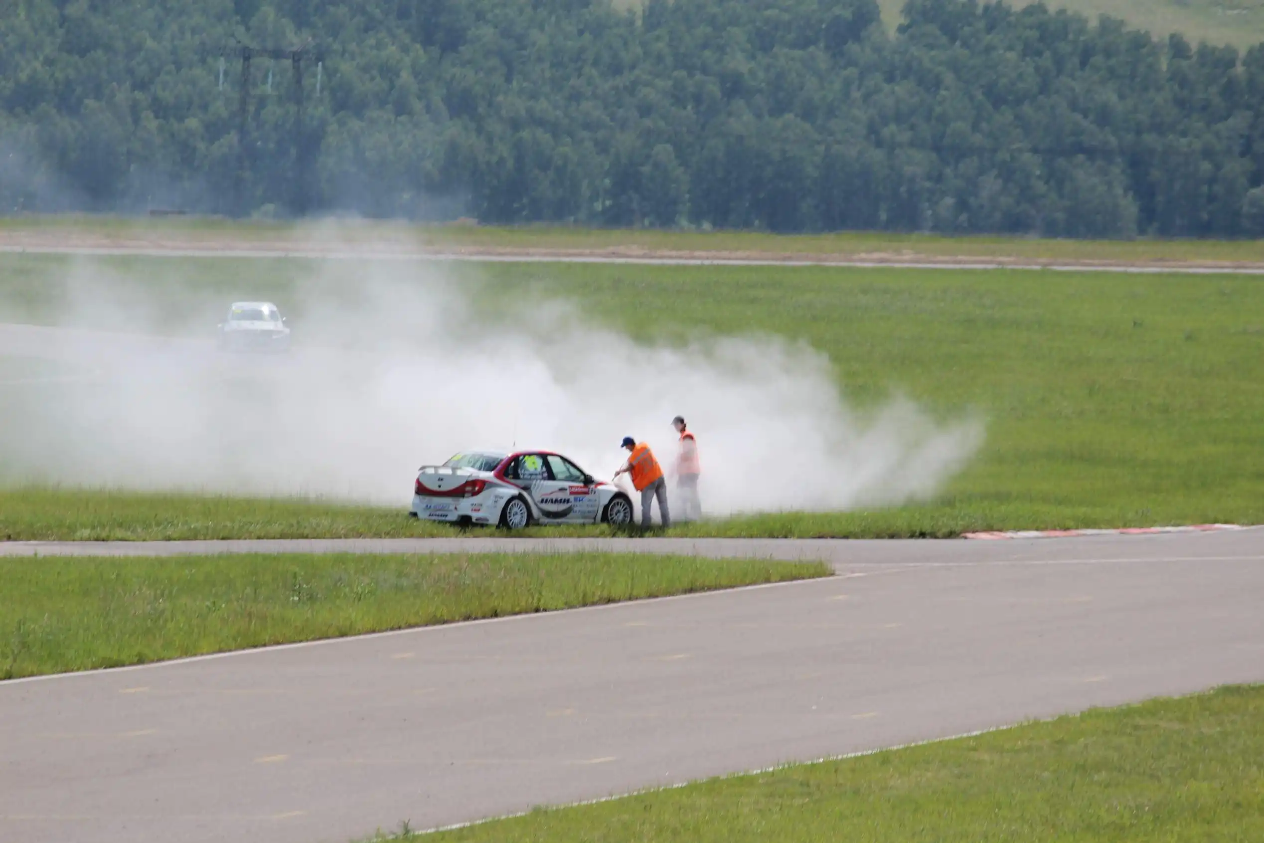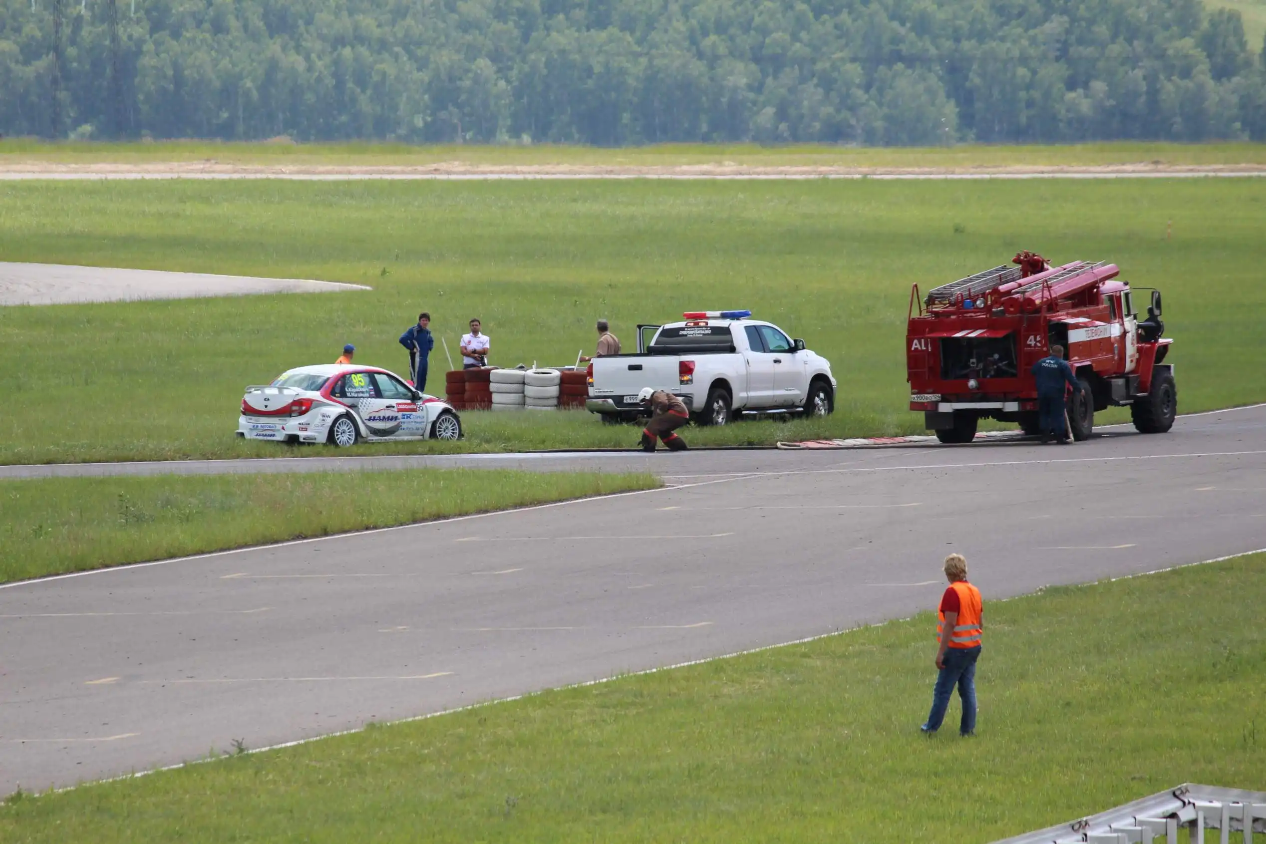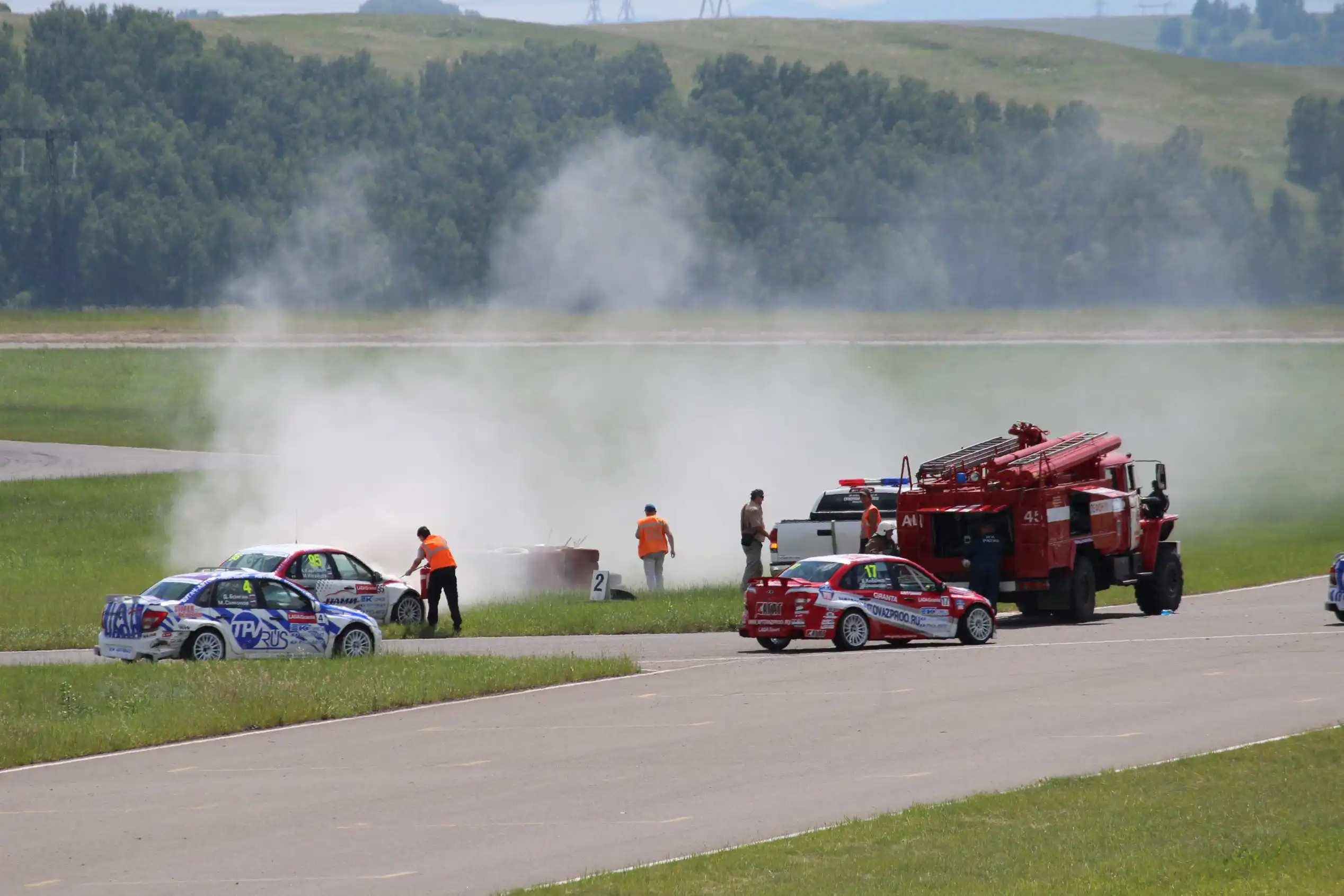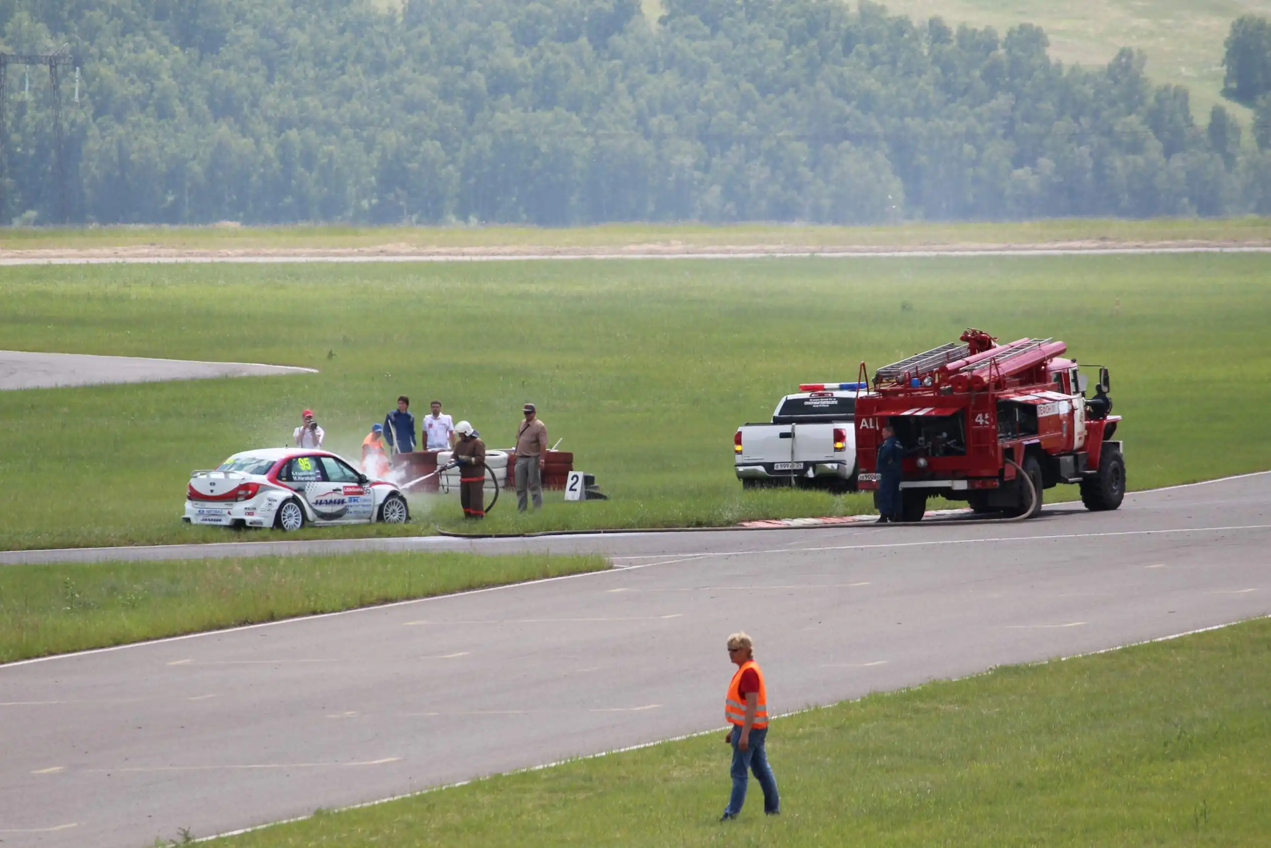 Сделаю спойлер: в этой части Вы увидите два из четырех возгораний спортивных автомобилей. Пожарная служба работала ОЧЕНЬ медленно. Был один пожар в самом дальнем повороте, пожарники ехали туда минут 10-15, и за это время подкапотное простанство машины сгорело полностью.