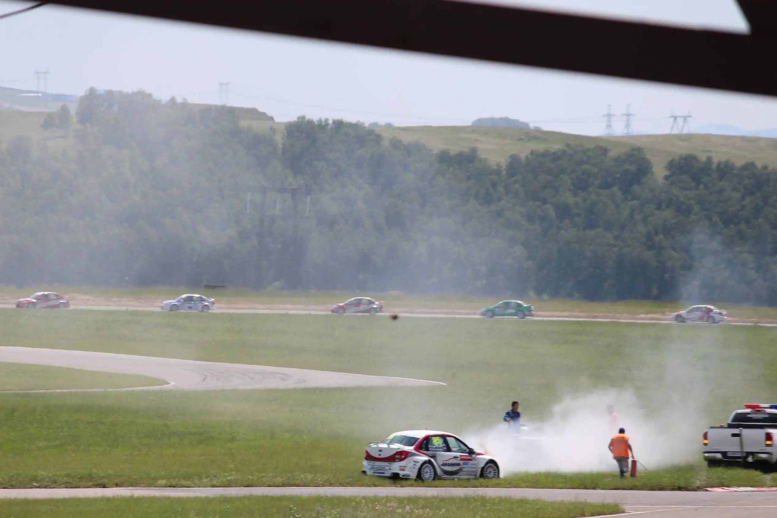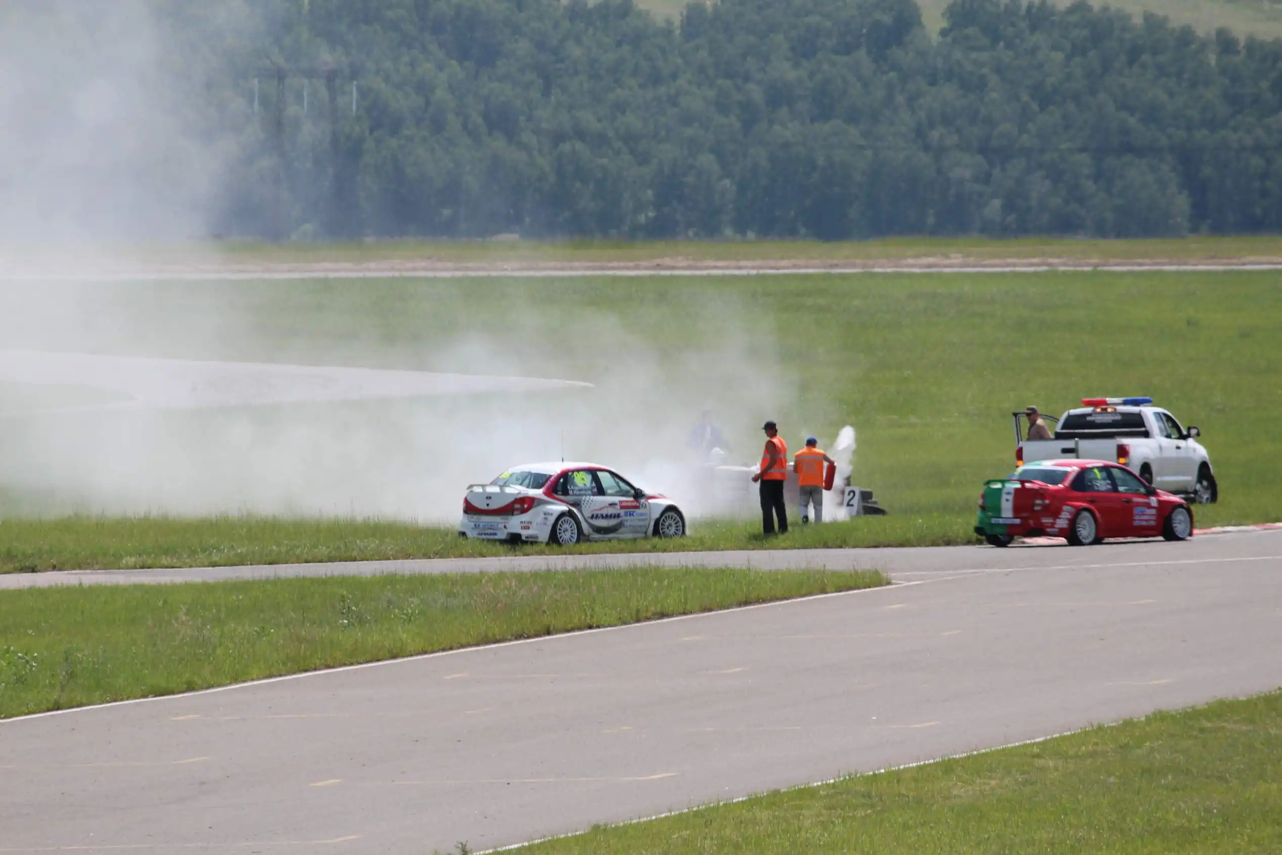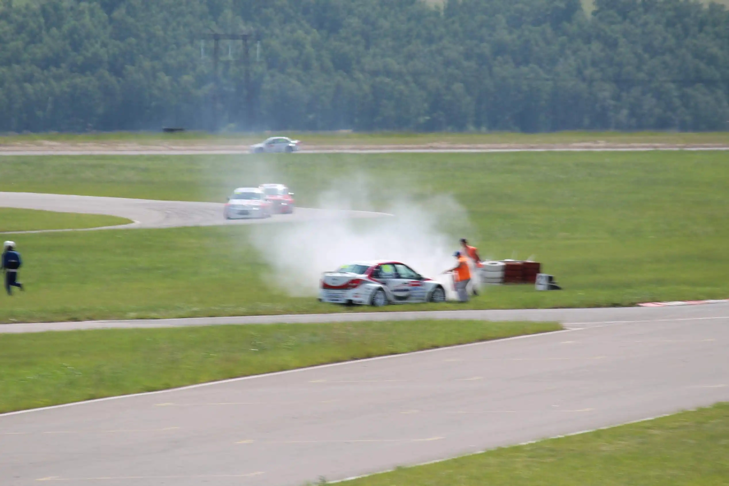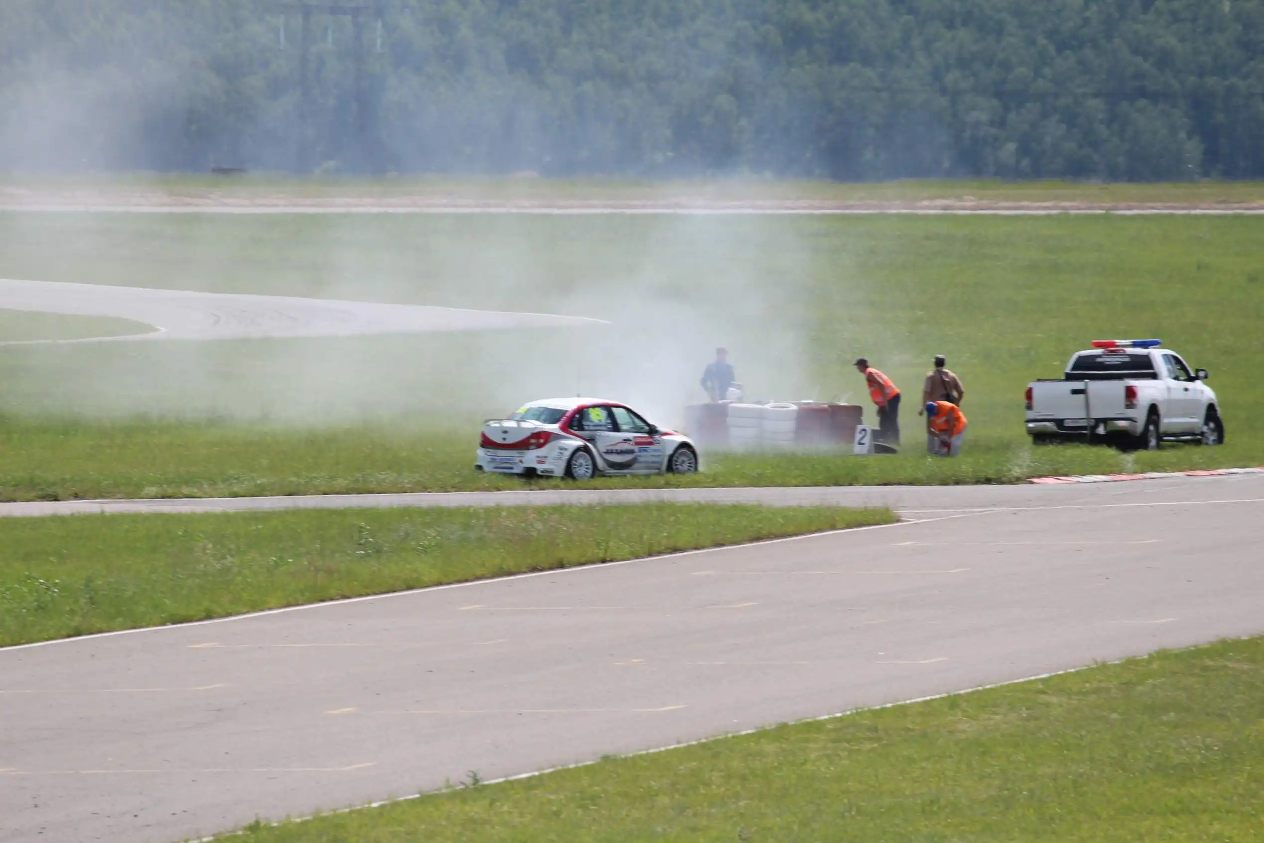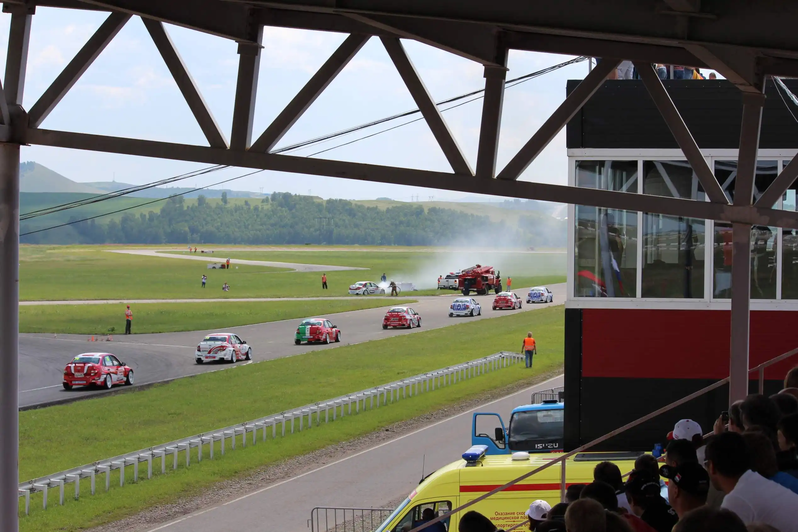 Сделаю спойлер: в этой части Вы увидите два из четырех возгораний спортивных автомобилей. Пожарная служба работала ОЧЕНЬ медленно. Был один пожар в самом дальнем повороте, пожарники ехали туда минут 10-15, и за это время подкапотное простанство машины сгорело полностью.