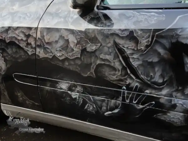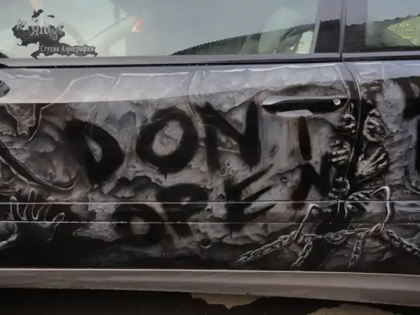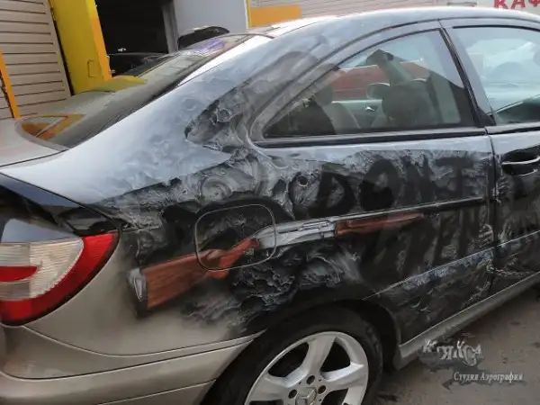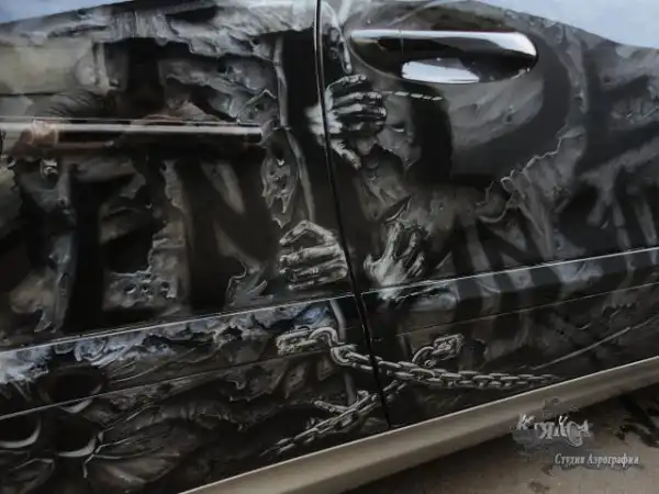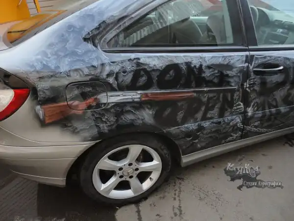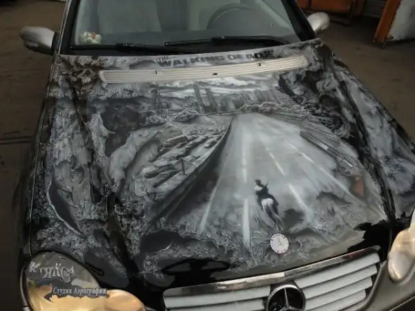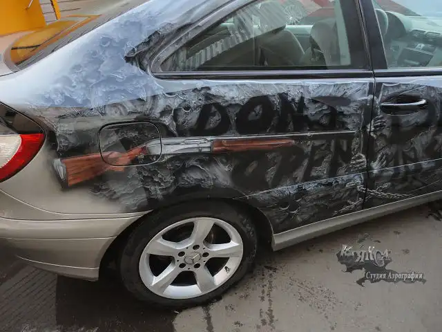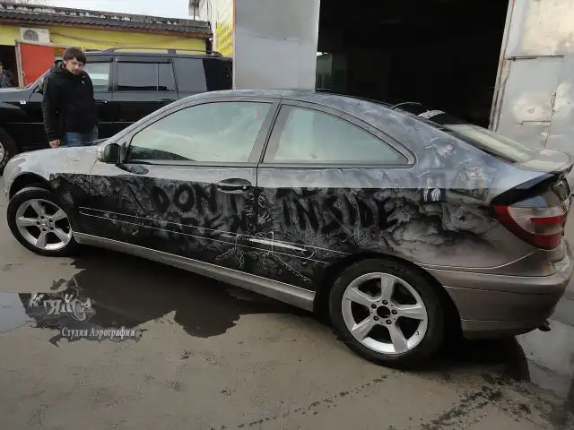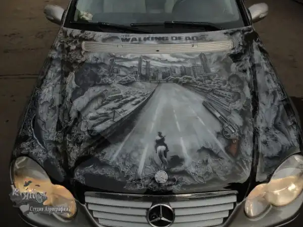 Похоже владелец этого Мерседеса настоящий фанат фильма "Ходячие мертвецы".