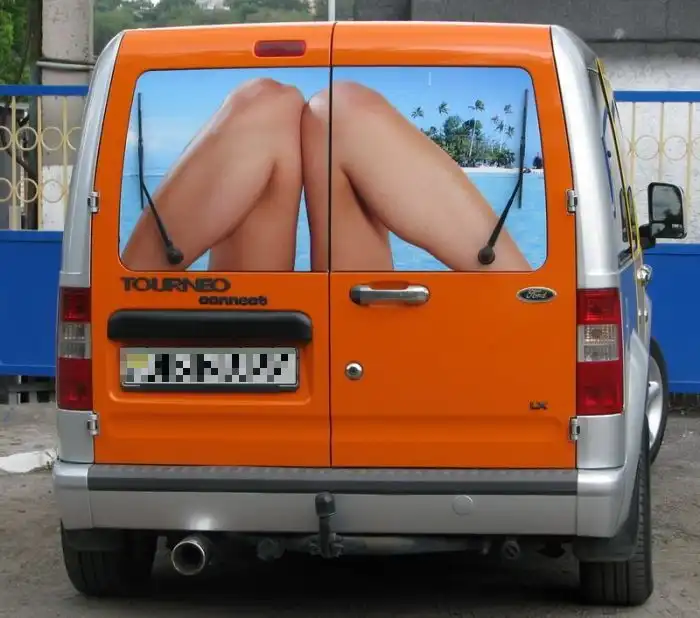 Когда видишь такое креативное оформление микроавтобуса, честно говоря, так и хочется въехать ему в зад ;)