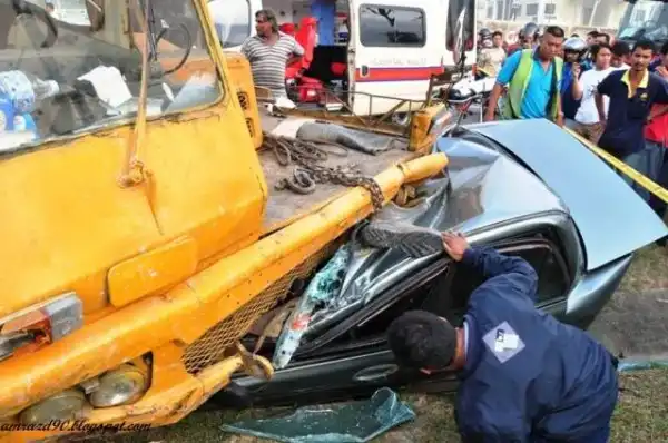 Беременная женщина, попавшая в жуткую аварию, в которой пострадало 5 автомобилей, просто родилась в рубашке и чудом отделалась лишь легкими ушибами. Тяжелый подъемный кран подмял под себя ее автомобиль и, казалось бы, что в такой ситуации выжить просто не было шансов!