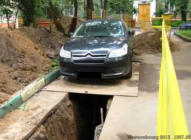 Глядя на эти фото в продолжении поста, у меня сразу появилось два вопроса ;) Как работягам удалось засунуть стальной лист под автомобиль, и второй вопрос: кому в голову пришла эта гениальная идея? ;)