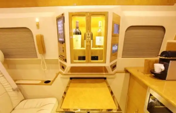 Внешне этот черный микроавтобус Mercedes-Benz B6 Sprinter мало чем отличается от массы подобных транспортных средств. Однако, самое интересное у него находится внутри. Reále от тюнинговой компании Lexani Motorcars на самом деле является бронированным домом на колесах класса "люкс". Что находится внутри, можете посмотреть сами. Скажу только, что стоимость этого чуда - чуть меньше полумиллиона долларов. 450 000, если быть точным.