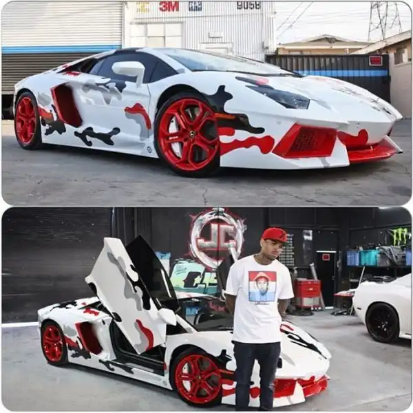 Помнится, я рассказывал вам о том, что рэпер Flo-Rida понту ради покрыл свой Bugatti Veyron золотом. Но Крис Браун (тот самый, который Рианну воспитывал кулаками) пошел еще дальше: он отвалил 15 000 долларов США за то, чтобы его суперкар Lamborghini Aventador перекрасили в стиле его любимых кроссовок Nike Air Foamposite Fighter Jet. Как думаете, может рекламный ход? Или он действительно настолько идиот.