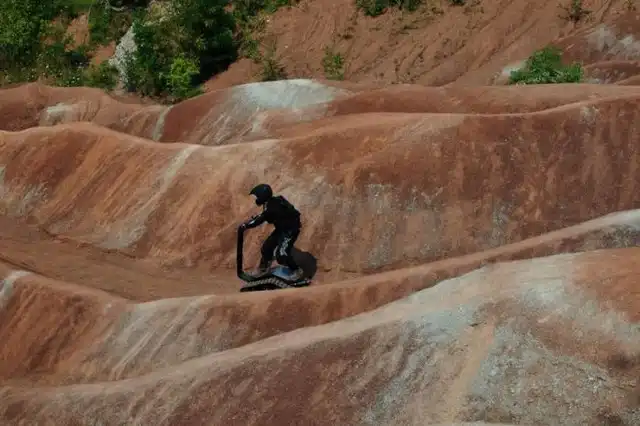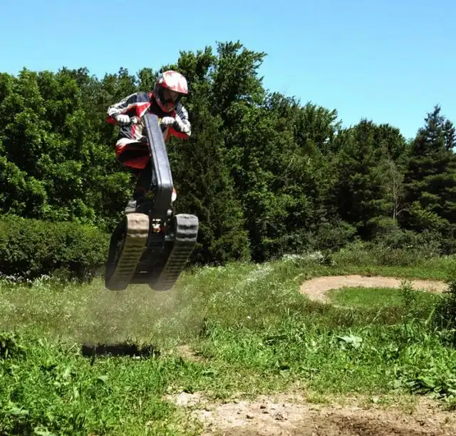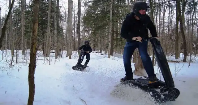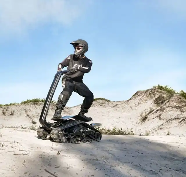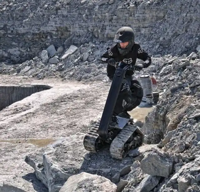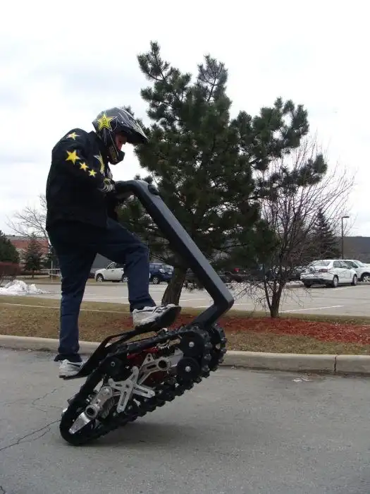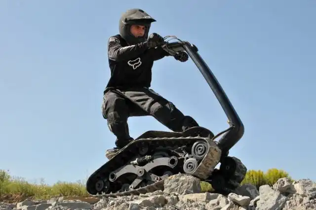 Это экстремальное транспортное средство под названием DTV Shredder было разработано еще в 2010 году, но довольно скоро оно поступит в свободную продаже. Что же в нем такого необычного? Состоит этот гусеничный самокат из двух гусеничных траков, соединенных с форсированным двигателем внутреннего сгорания с объемом в 200 кубических сантиметров от Honda и способен развивать скорость в 48 километров в час. Что самое интересное, для этого устройства просто не существует непроходимых дорог, ведь оно способно преодолевать уклоны до 40 градусов!