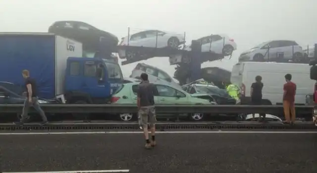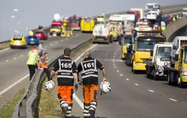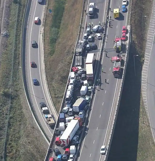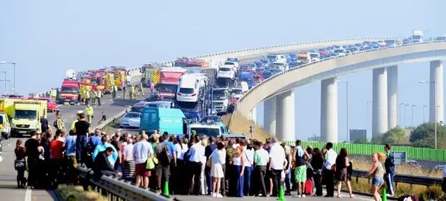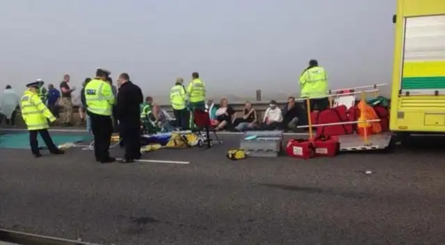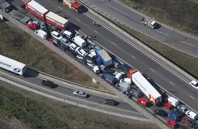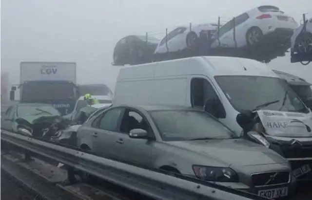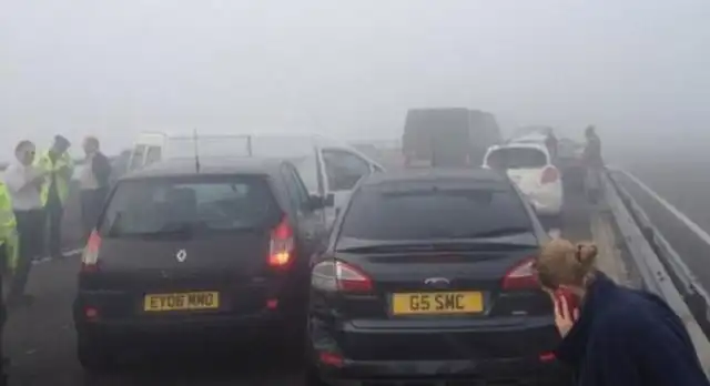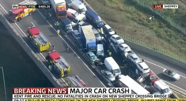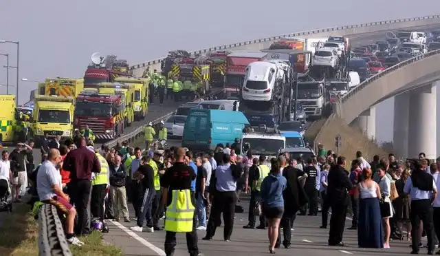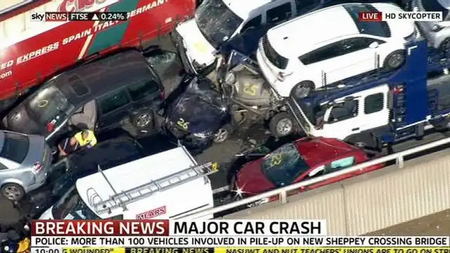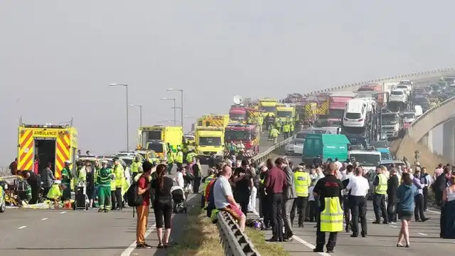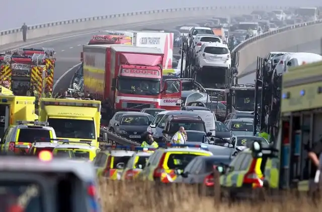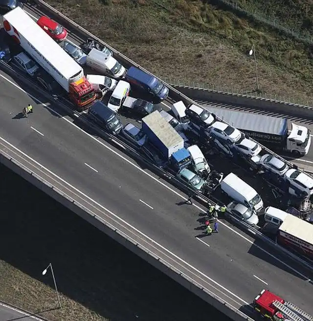 Эта серьезная авария, если "это" месиво можно так назвать, стала самой массовой из всех, которые произошли когда-либо в Великобритании, ведь в ней пострадало более 130 автомобилей. Произошло это ДТП из-за сильного тумана, который снизил видимость дороги на пересечении нового моста с Шеппей уэй практически до нуля. Хоть, к счастью, никто не погиб в этом жутком происшествии, но более 200 человек получили ранения средней тяжести.