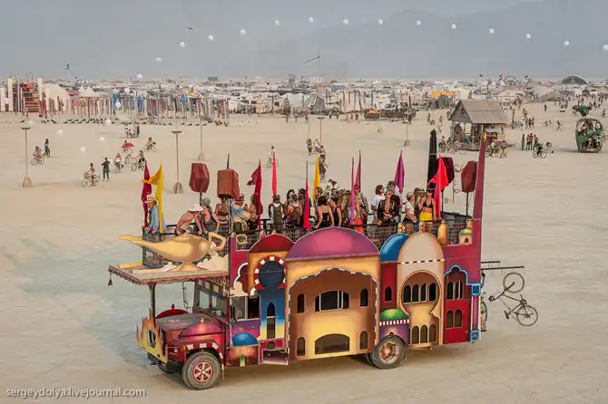 Корабль пустыни. Поскольку фестиваль зародился на пляже, из года в год популярна водная тематика: