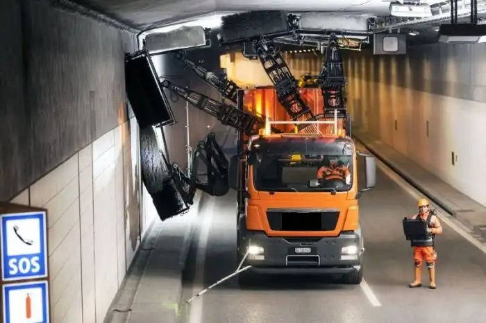 Хоть в нашей стране столь необычный "девайс" появится точно не скоро, предлагаю вам посмотреть далее на то, какая спецтехника используется в Швейцарии для чистки автомобильных тоннелей.