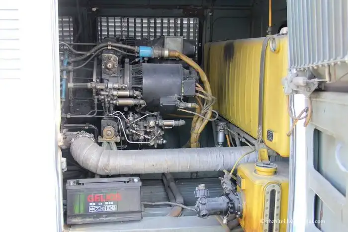Сразу за водителем установлен огромный топливный бак. За топливном баком какое-то устройство с кучей проводов, трубок и шлангов.