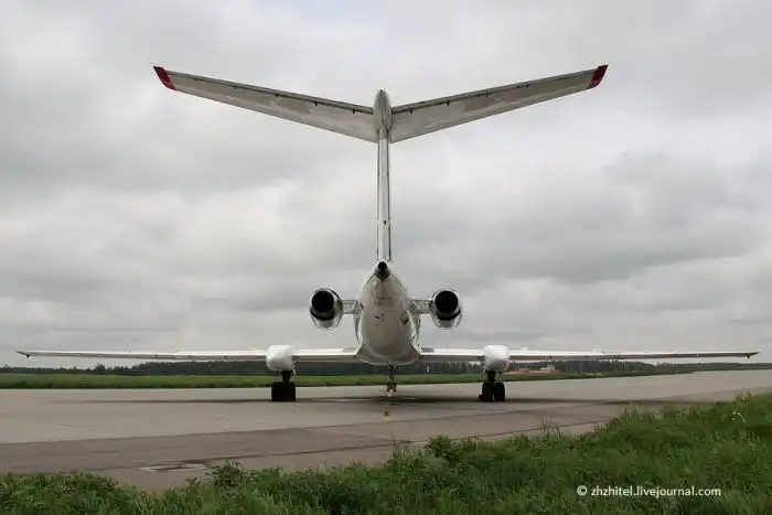 Сейчас самолет буксируется тягачом. Основные двигатели не запущены, зато видно, что ВСУ работает. Видите струю выходящих газов?
