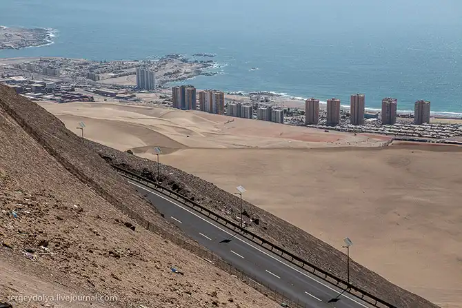 По пути в гостиницу поснимали город. С востока его окружает огромная песчаная дюна: