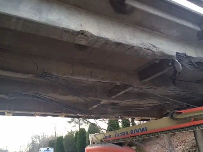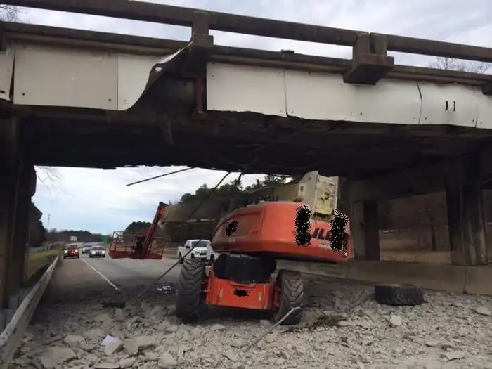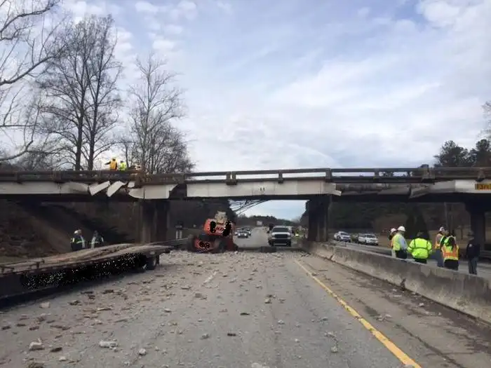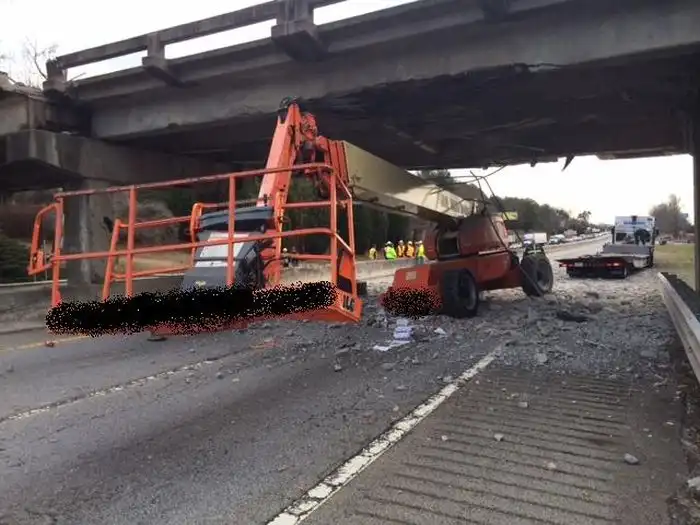 Дальнобойщики довольно часто забывают о высоте своего груза. Так произошло и в этот раз, когда один водитель тягача с крупногабаритным грузом забыл проверить высоту моста и на полном ходу чуть не снес один пролет.