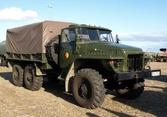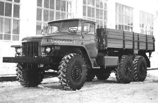 Урал-375- шестиосный внедорожник Урал-375-еще один полноприводный грузовик, который массово использовался не только для гражданских, но и армейских нужд. Три ведущие оси и огромные колеса, а также большая грузоподъемность позволяли возить на нем по самым плохим дорогам и в отсутствие оных не только людей и грузы, но даже системы залпового огня Град. Однако существенные технические недочеты, к примеру, ненадежный, но затратный бензиновый двигатель, а также проблемы в тормозной системе привели к тому, что Министерство обороны уже в 1982 году начало сменять этот грузовой автомобиль на Урал-4320.