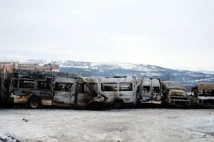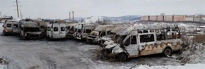 В Мурманске разгорелась настоящая война между водителями маршрутных такси. В ночь с 9 на 10 февраля 2014 года сожгли сразу 19 микроавтобусов одной из компаний. Пока неизвестно, удалось ли найти поджигателей, но таких серьёзных разборок не припомнить с 90-х годов.