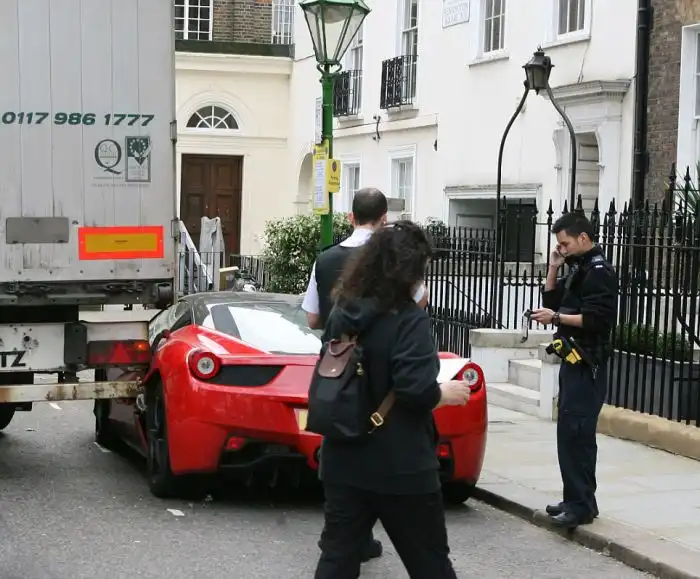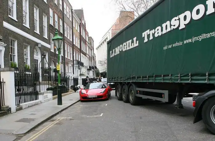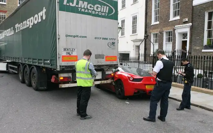 Вот такая досадная картина ожидала владельца дорогостоящего суперкара Ferrari 458 Italia в Лондоне, когда вернулся к своему недавно припаркованному по всем правил спорткару. К несчастью, водитель грузовика слегка не рассчитал габариты своего авто и протаранил весь бок Ferrari. Ну что тут еще добавить? Ремонт этой 458 Italia обойдется в "кругленькую" сумму..