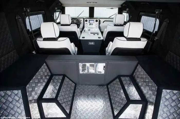 Я вам уже рассказывал ранее о бронированном отечественном внедорожнике под названием "ГАЗ Тигр", а не так давно тюнинг ателье DDM представило доработанный броневик, получивший люксовый интерьер и всевозможные новинки автомобильной электроники. Помимо совершенствования салона, тюнер также серьезно изменил внешний вид "Тигра", начиная от полного перекрашивания, а заканчивая формой капота, навесными элементами и даже тюнингованной оптикой.