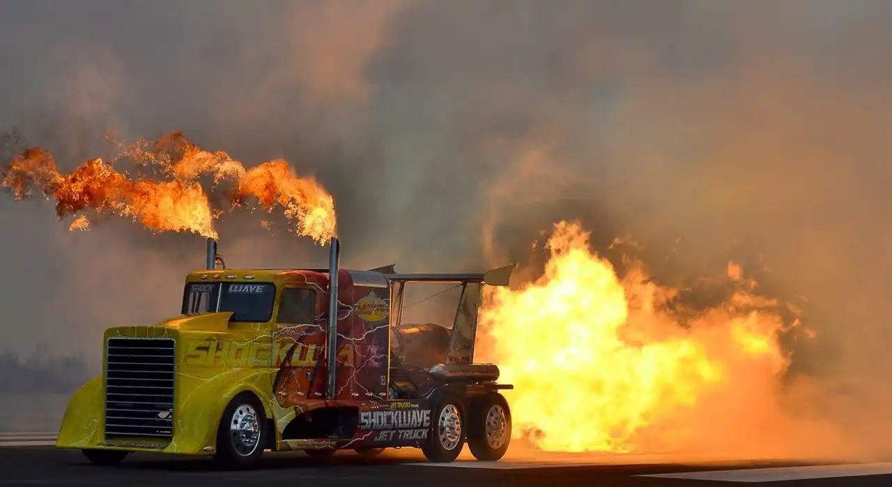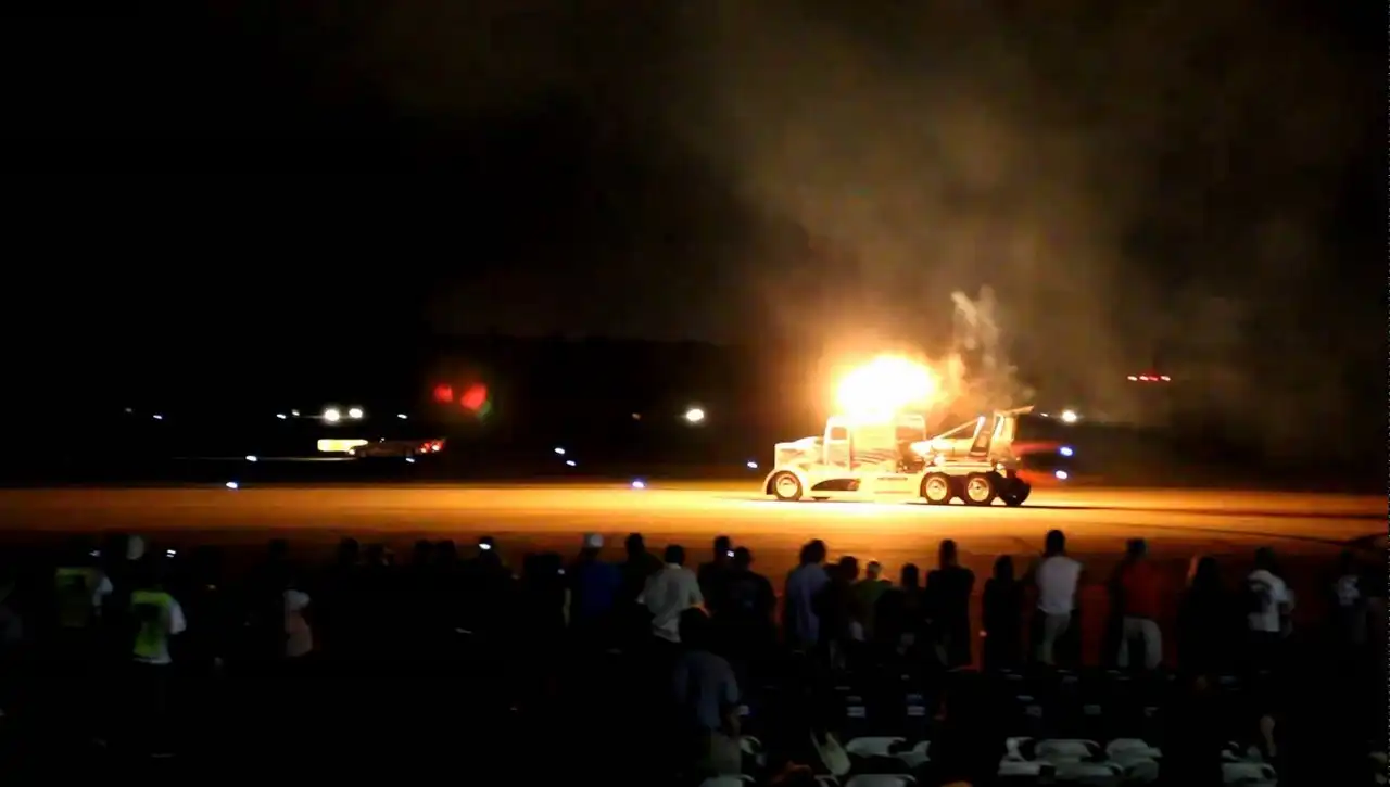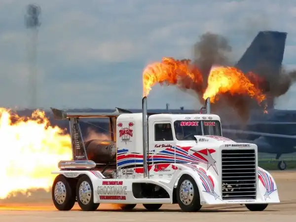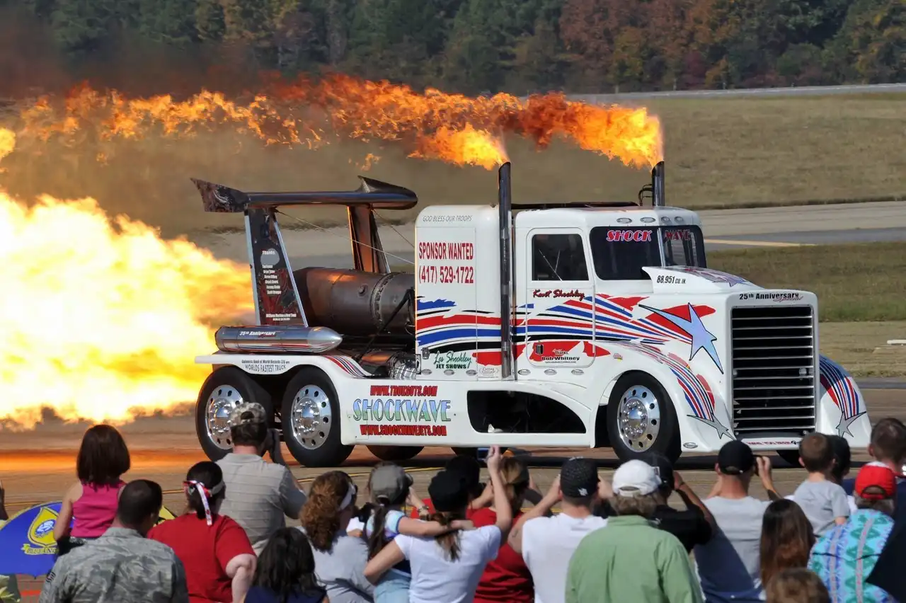 В организованном им шоу «Shockwave» соревнуется не с себе подобным монстром, а с самолетом! Давая пролетающему почти над самой кабиной легкомоторному самолету небольшую фору, грузовик успевает перегнать его на гоночной дистанции, а в промежутках между заездами уничтожает выхлопными струями реактивных двигателей старенькие легковушки и списанные школьные автобусы на радость зрителям.