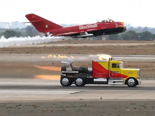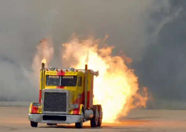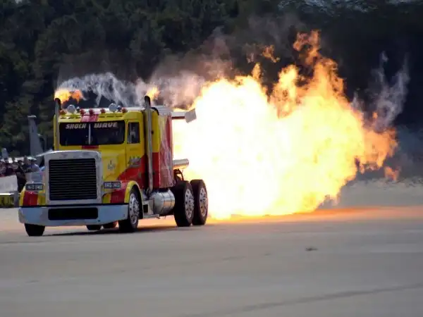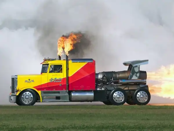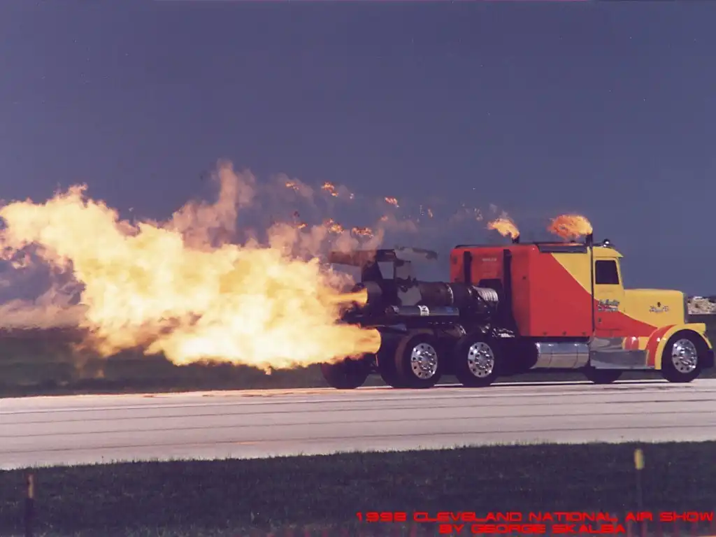 Всего же проект потребовал около 4000 человеко-часов и полмиллиона долларов. Но результат оправдал все надежды и, что немаловажно — вложенные средства. В качестве платформы для монтажа реактивной силовой установки выбрали американский магистральный седельный тягач Peterbilt 1985 года. Использование реактивной тяги не предполагает привода на колеса, поэтому грузовик лишился трансмиссии. Под внушительным капотом тоже пустота — дизельный двигатель реактивному грузовику не нужен.