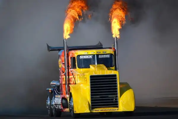 Тем не менее дизельное топливо он потребл*ть не перестал, причем делает это в устрашающих количествах: 400 галлонов (1514 л.) на 1 милю (1,6 км.). Классический для дрэг-рейсинга заезд на четверть мили требует 454 литра дизельного топлива. Кстати, оно расходуется не только на движение, но и на создание двух огромных огненных факелов над вертикальными «выхлопными трубами».