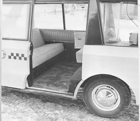 Пассажиры (до 4 человек) попадали внутрь «перспективного такси» через широкую сдвижную дверь с электроприводом, сидение водителя помещалось практически по центру между арками передних колес (с небольшим смещением влево), что обеспечивало ему хороший обзор и свободу движений. Площадка с педалями управления автомобилем могла менять свое положение относительно водительского кресла. Также стоит отметить нестандартное расположение двигателя «Москвич-408» объемом 1358 см³ и мощностью 50 л. с. – поперечное, в задней части кузова.