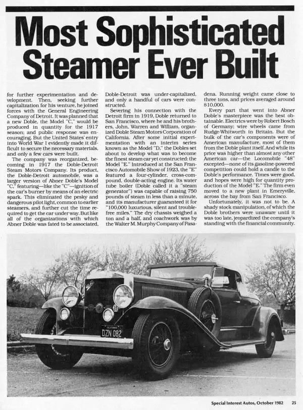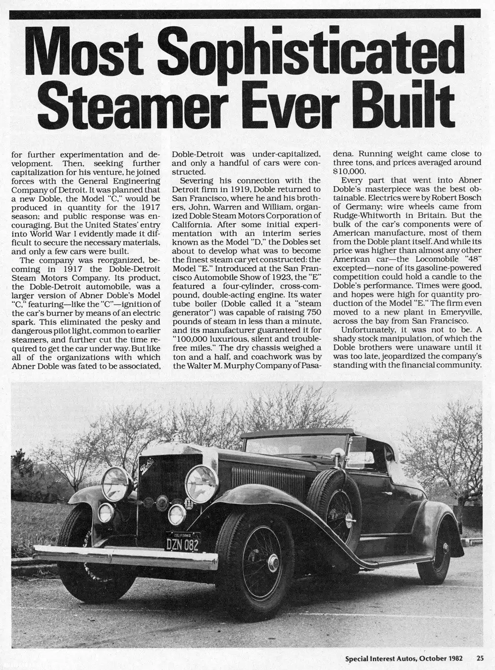 Автомобили с революционным паровым двигателем рекламировались как The Magnificent Doble — «Великолепный Добл».