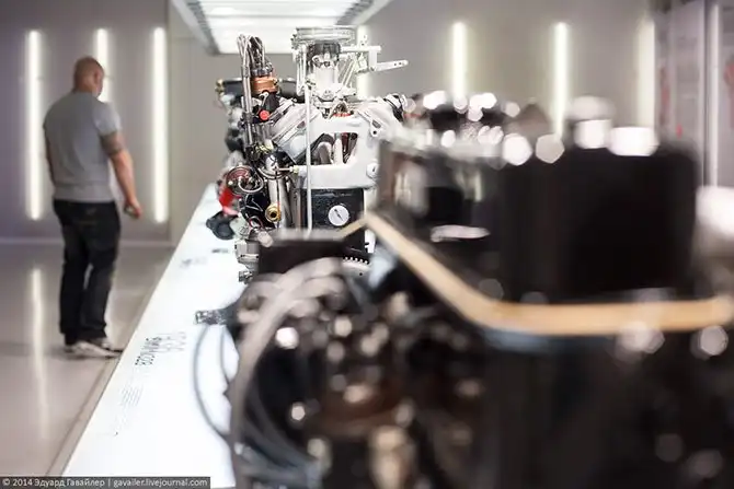 В экспозициях музея нет четкой структурированной исторической линии, разные залы — разная тематика. От ретро- к суперкарам, от мотоциклов и двигателей к концептам и дизайну.
