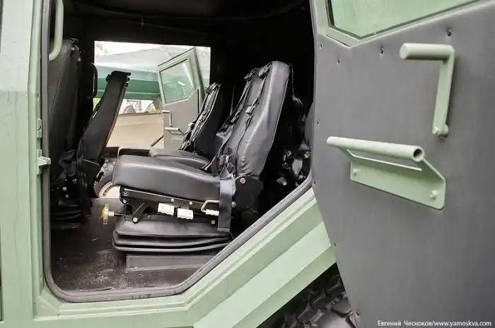 Броневик «Торос» имеет достаточно плотную компоновку пассажирской кабины. В базовом варианте, предназначенном для перевозки бойцов с оружием, он имеет десять посадочных мест. Два ряда по три сиденья размещены в передней и средней частях кабины (включая место водителя), еще четыре посадочных места имеются в задней части. Таким образом, новый бронеавтомобиль может перевозить отряд из девяти солдат, не считая водителя. Для посадки и высадки на каждом борту машины имеется две двери, открываемые в разные стороны. Для доступа к четырем задним сиденьям предусмотрена дверь в кормовом листе корпуса.