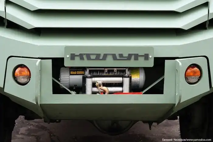 Как следует из представленных материалов, броневик «Колун» может оснащаться одним из двух типов бронекорпуса. Первый из них предлагается выполнять в виде двух отдельных блоков: в одном размещаются двигатель и кабина водителя, во втором – десант или груз. Второй вариант подразумевает использование единого бронекорпуса. Вне зависимости от архитектуры корпуса бронеавтомобиль «Колун» способен перевозить до 16 человек с вооружением. Два посадочных места находятся рядом с водителем, остальные – в объемном десантном отделении. Для посадки в машину предусмотрены две двери в бортах водительской кабины и крупная дверь в корме корпуса.